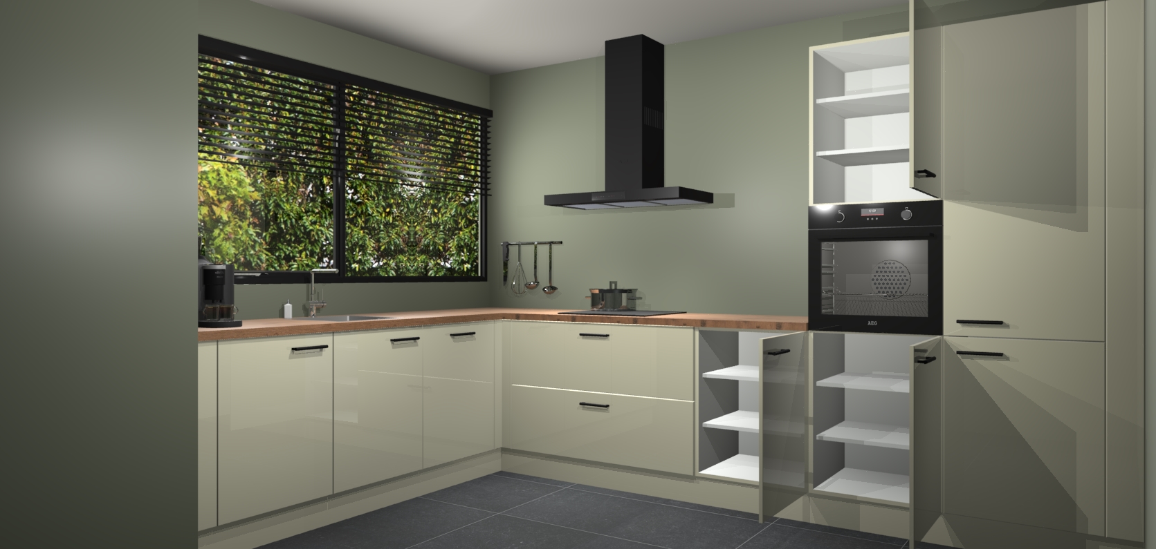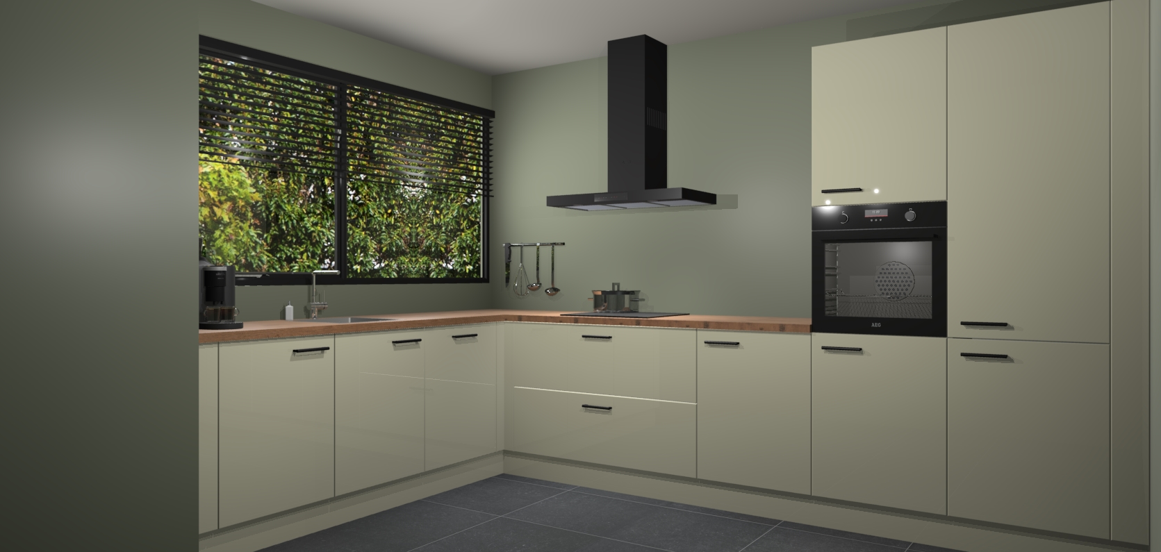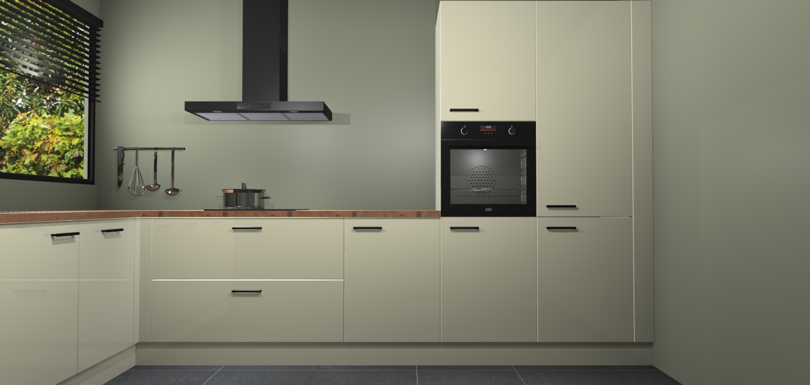 Met een modern, tijdloos design en ruime opslagruimte, zult u zich in no-time thuis voelen in uw nieuwe keuken. Uw leven wordt eenvoudiger met de soft-close deuren die voor het ultieme stille comfort zorgen - geen geluid dat u stoort terwijl u kookt. Ook is de keuken voorzien van 5 ingebouwde apparaten: een oven, inductie kookplaat, afzuigkap, vaatwasser en koelkast. Deze kunnen gemakkelijk na bestelling worden bijgewerkt naar AEG - waardoor uw luxe ervaring compleet is.