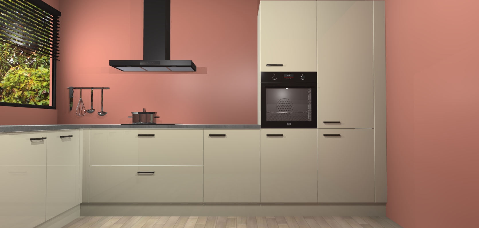 Met een modern, tijdloos design en ruime opslagruimte, zult u zich in no-time thuis voelen in uw nieuwe keuken. Uw leven wordt eenvoudiger met de soft-close deuren die voor het ultieme stille comfort zorgen - geen geluid dat u stoort terwijl u kookt. Ook is de keuken voorzien van 5 ingebouwde apparaten: een oven, inductie kookplaat, afzuigkap, vaatwasser en koelkast. Deze kunnen gemakkelijk na bestelling worden bijgewerkt naar AEG - waardoor uw luxe ervaring compleet is.
