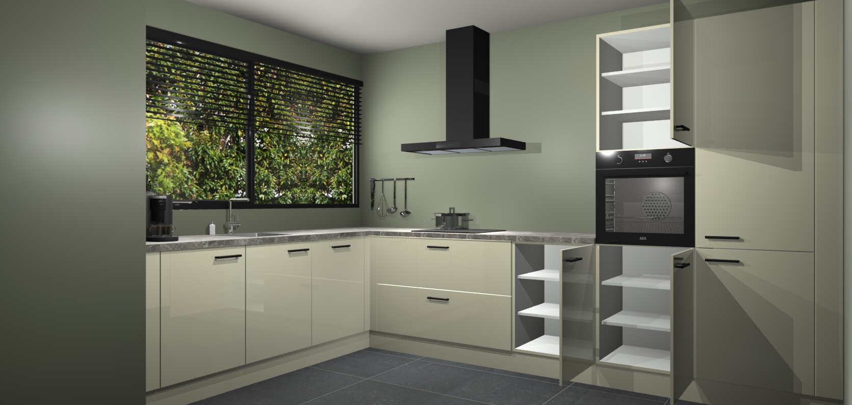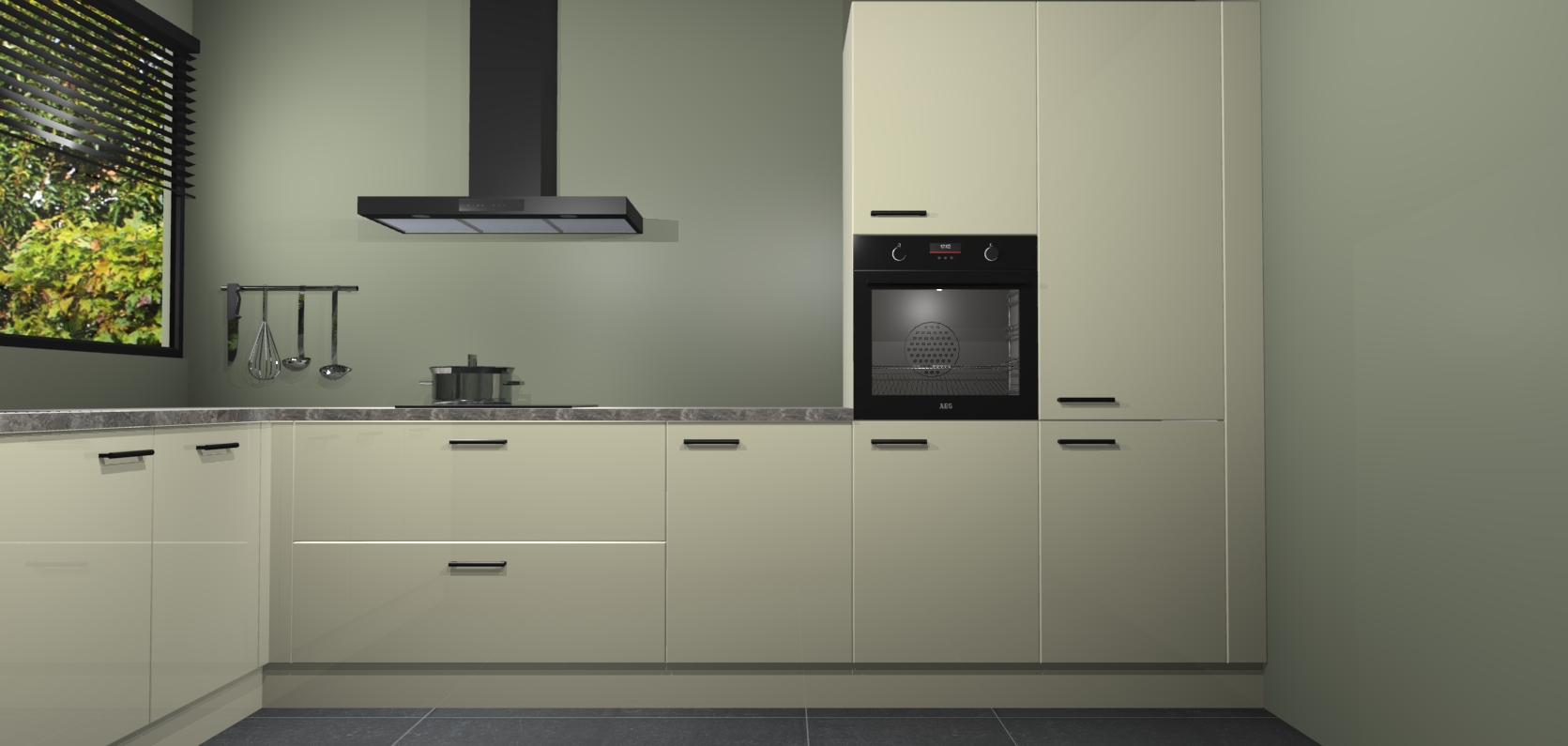 Met een modern, tijdloos design en ruime opslagruimte, zult u zich in no-time thuis voelen in uw nieuwe keuken. Uw leven wordt eenvoudiger met de soft-close deuren die voor het ultieme stille comfort zorgen - geen geluid dat u stoort terwijl u kookt. Ook is de keuken voorzien van 5 ingebouwde apparaten: een oven, inductie kookplaat, afzuigkap, vaatwasser en koelkast. Deze kunnen gemakkelijk na bestelling worden bijgewerkt naar AEG - waardoor uw luxe ervaring compleet is.
