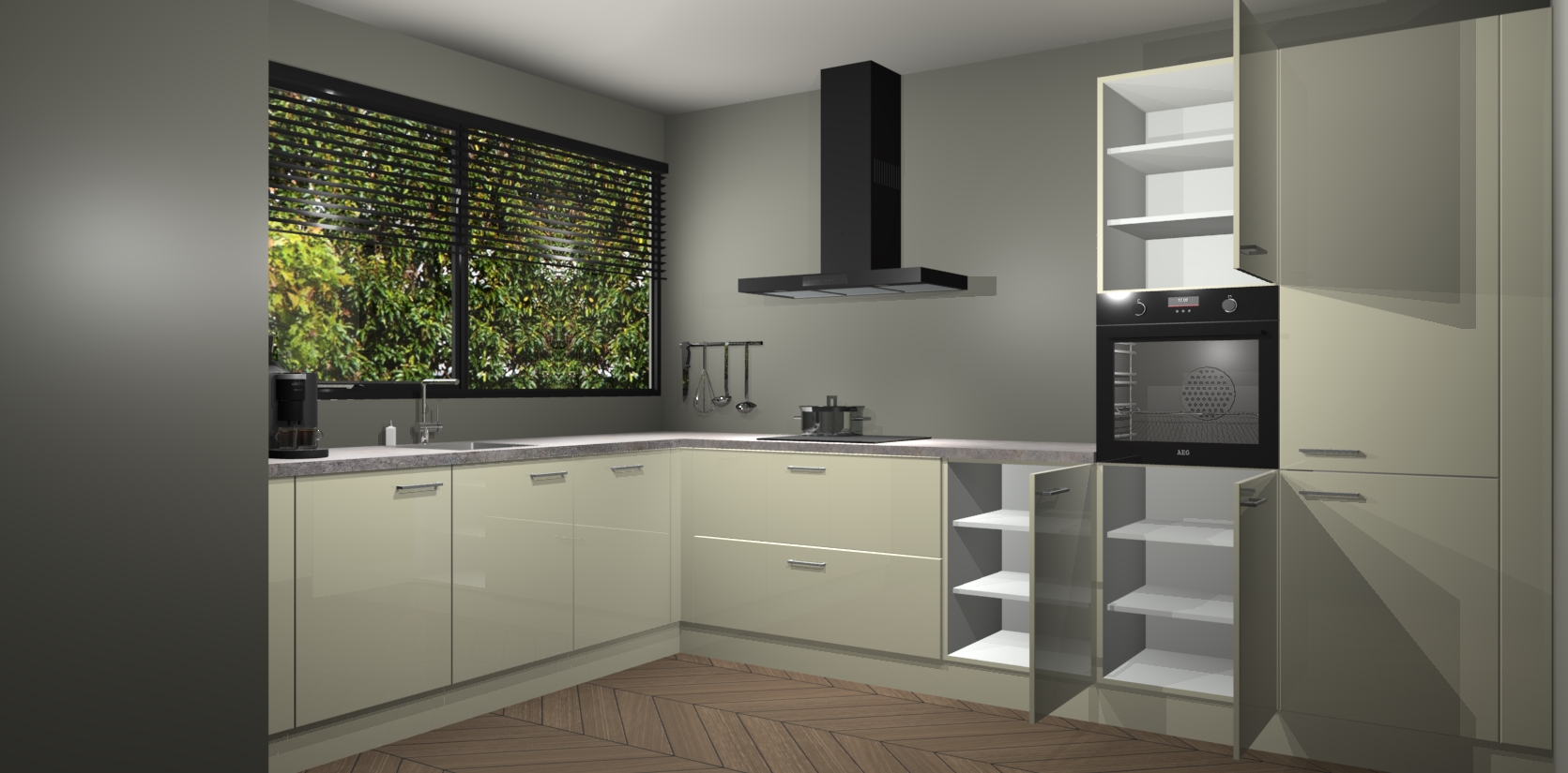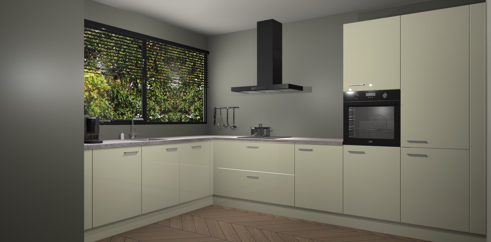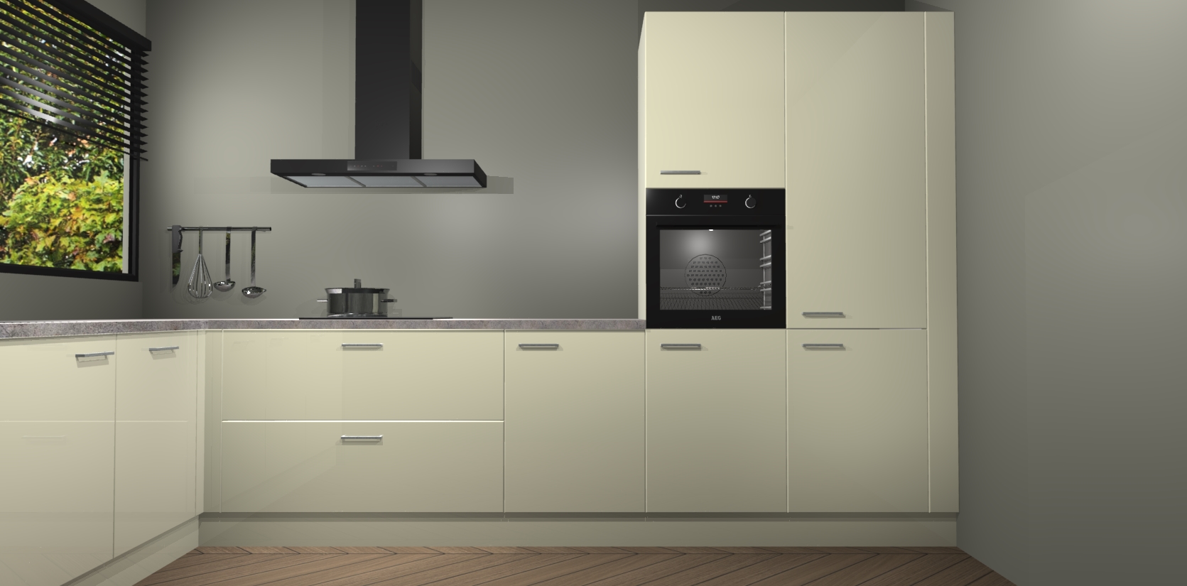 Met een modern, tijdloos design en ruime opslagruimte, zult u zich in no-time thuis voelen in uw nieuwe keuken. Uw leven wordt eenvoudiger met de soft-close deuren die voor het ultieme stille comfort zorgen - geen geluid dat u stoort terwijl u kookt. Ook is de keuken voorzien van 5 ingebouwde apparaten: een oven, inductie kookplaat, afzuigkap, vaatwasser en koelkast. Deze kunnen gemakkelijk na bestelling worden bijgewerkt naar AEG - waardoor uw luxe ervaring compleet is.