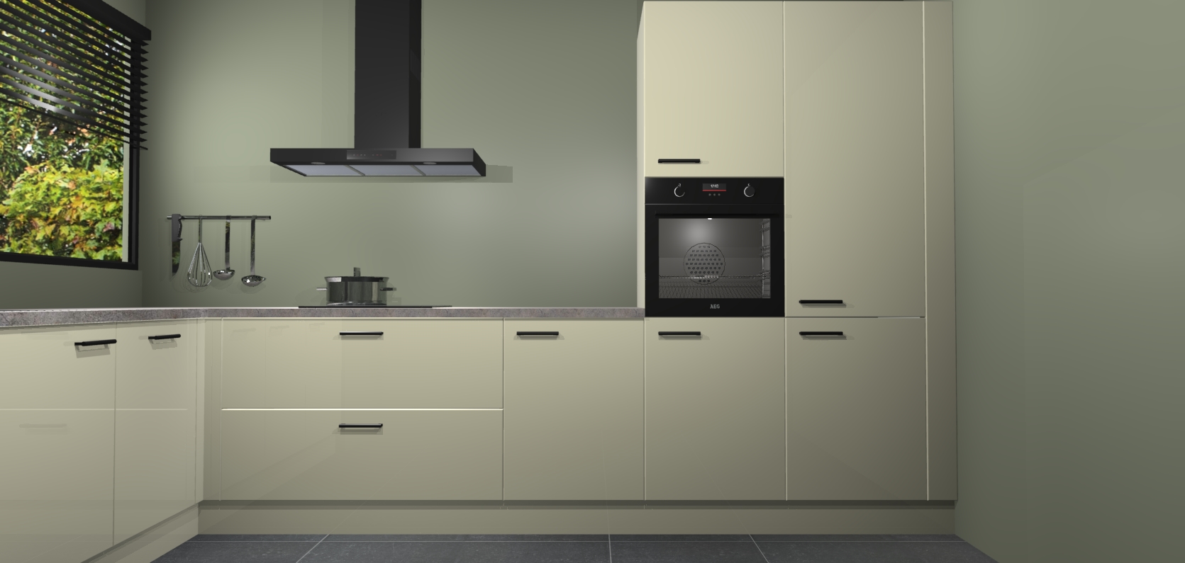 Met een modern, tijdloos design en ruime opslagruimte, zult u zich in no-time thuis voelen in uw nieuwe keuken. Uw leven wordt eenvoudiger met de soft-close deuren die voor het ultieme stille comfort zorgen - geen geluid dat u stoort terwijl u kookt. Ook is de keuken voorzien van 5 ingebouwde apparaten: een oven, inductie kookplaat, afzuigkap, vaatwasser en koelkast. Deze kunnen gemakkelijk na bestelling worden bijgewerkt naar AEG - waardoor uw luxe ervaring compleet is.