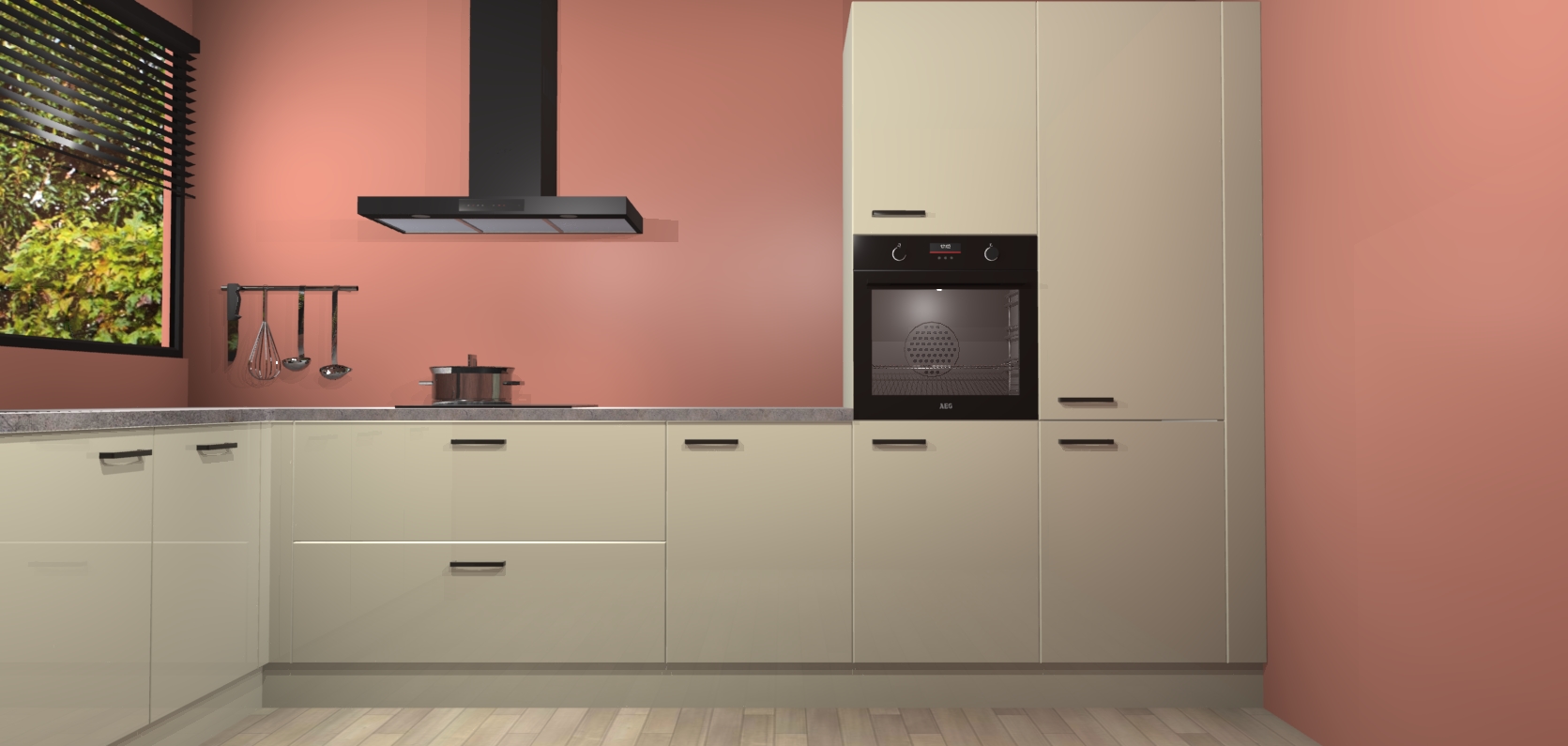 Met een modern, tijdloos design en ruime opslagruimte, zult u zich in no-time thuis voelen in uw nieuwe keuken. Uw leven wordt eenvoudiger met de soft-close deuren die voor het ultieme stille comfort zorgen - geen geluid dat u stoort terwijl u kookt. Ook is de keuken voorzien van 5 ingebouwde apparaten: een oven, inductie kookplaat, afzuigkap, vaatwasser en koelkast. Deze kunnen gemakkelijk na bestelling worden bijgewerkt naar AEG - waardoor uw luxe ervaring compleet is.