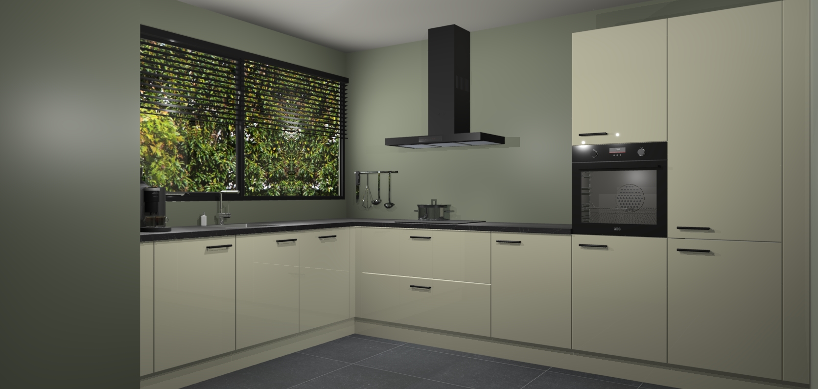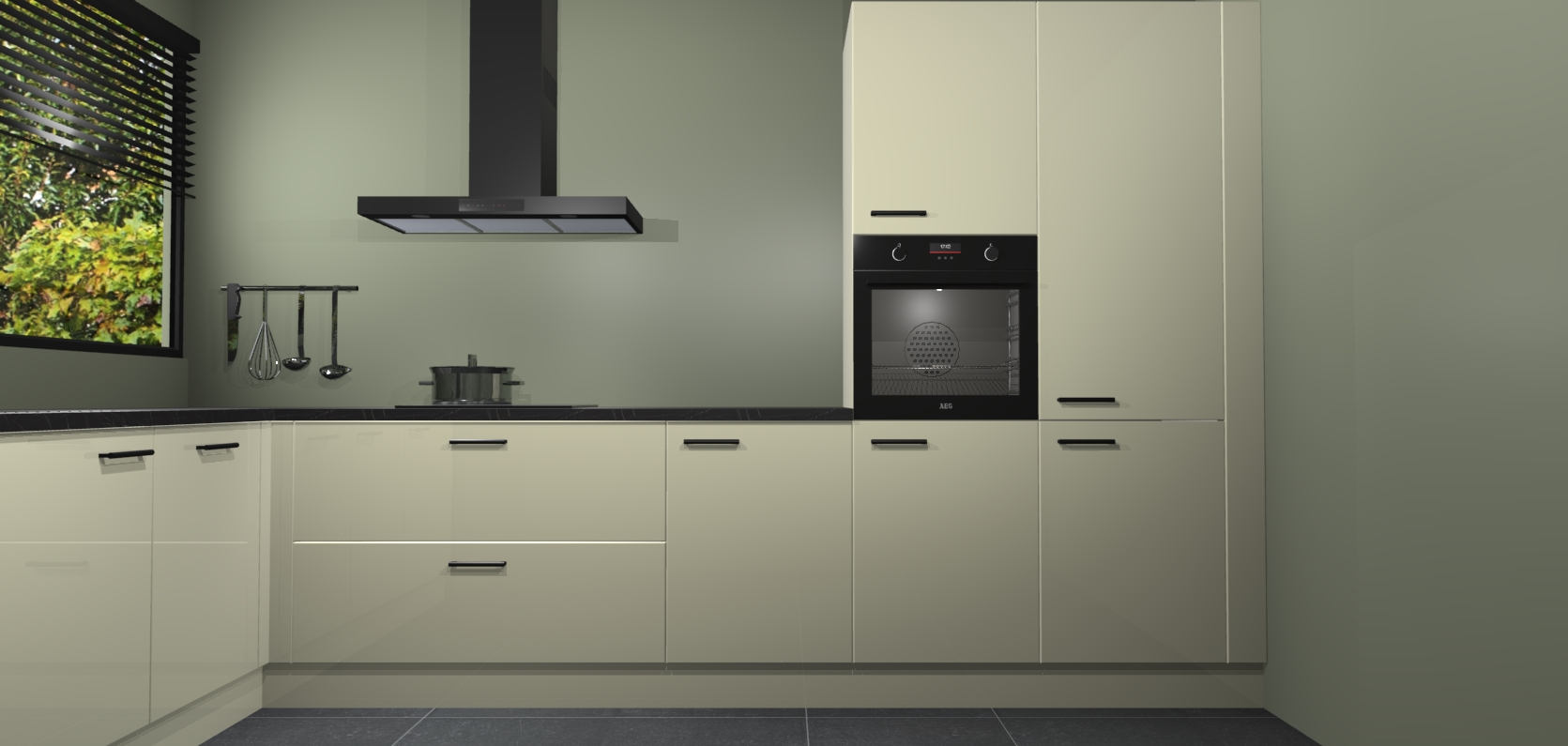 Met een modern, tijdloos design en ruime opslagruimte, zult u zich in no-time thuis voelen in uw nieuwe keuken. Uw leven wordt eenvoudiger met de soft-close deuren die voor het ultieme stille comfort zorgen - geen geluid dat u stoort terwijl u kookt. Ook is de keuken voorzien van 5 ingebouwde apparaten: een oven, inductie kookplaat, afzuigkap, vaatwasser en koelkast. Deze kunnen gemakkelijk na bestelling worden bijgewerkt naar AEG - waardoor uw luxe ervaring compleet is.
