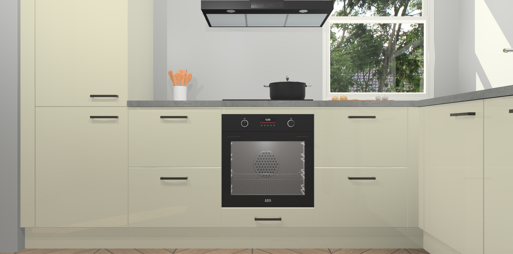 Wat maakt deze keuken zo bijzonder? Ten eerste geeft het houten werkblad uw ruimte een onmiskenbaar klassieke uitstraling. De natuurlijke afwerking roept warmte en elegantie op die nooit uit de mode zullen raken. Bovendien is het gemakkelijk schoon te houden en te onderhouden, zodat je er jarenlang plezier van kunt hebben. Als u op zoek bent naar extra gemak in uw keuken, dan heeft u bij het plaatsen van een bestelling bij ons ook de optie om uw toestellen te upgraden naar AEG-modellen - zo haalt u moderne innovatie van topmerken in apparatentechnologie rechtstreeks in huis.