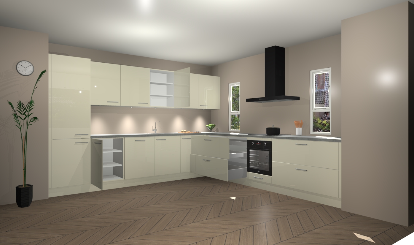De magnolia hoogglans keuken is een ideale hoekkeuken en heeft alle functies en apparatuur die u maar nodig kunt hebben. Bij de bestelling krijgt u een oven, inductiekookplaat, afzuigkap, vaatwasser en koelkast - deze kunnen desgewenst eenvoudig worden uitgebreid naar AEG na bestellen. Elke kast wordt ook voor gemonteerd geleverd met soft close deuren die jarenlang gebruik beloven. Stelt u zich voor dat u geen gedoe heeft met vervelende montage - vanaf het moment dat u uw bestelling plaats, duurt het slechts 7 weken voor het bij u thuis geleverd wordt.