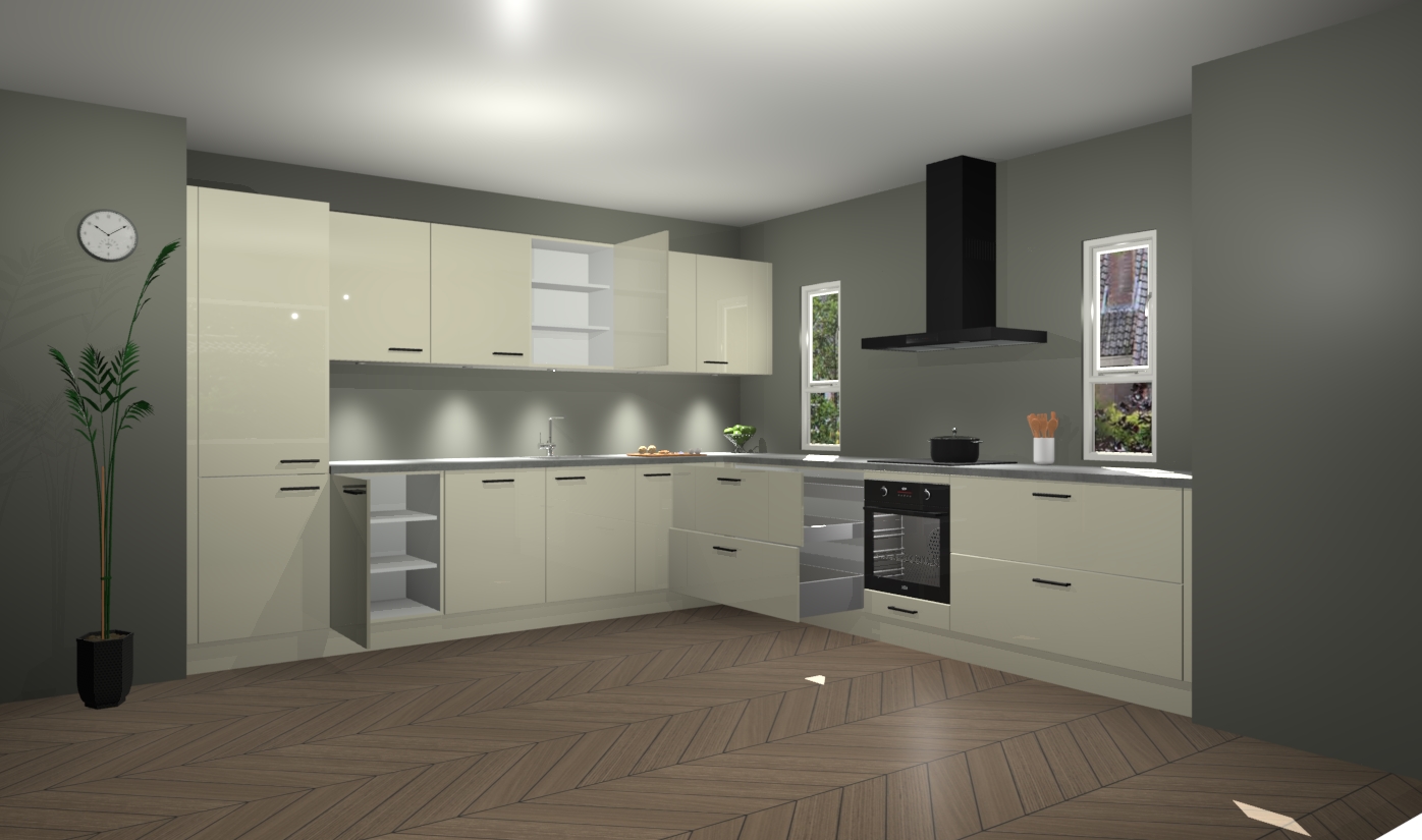 De magnolia hoogglans keuken is een ideale hoekkeuken en heeft alle functies en apparatuur die u maar nodig kunt hebben. Bij de bestelling krijgt u een oven, inductiekookplaat, afzuigkap, vaatwasser en koelkast - deze kunnen desgewenst eenvoudig worden uitgebreid naar AEG na bestellen. Elke kast wordt ook voor gemonteerd geleverd met soft close deuren die jarenlang gebruik beloven. Stelt u zich voor dat u geen gedoe heeft met vervelende montage - vanaf het moment dat u uw bestelling plaats, duurt het slechts 7 weken voor het bij u thuis geleverd wordt.