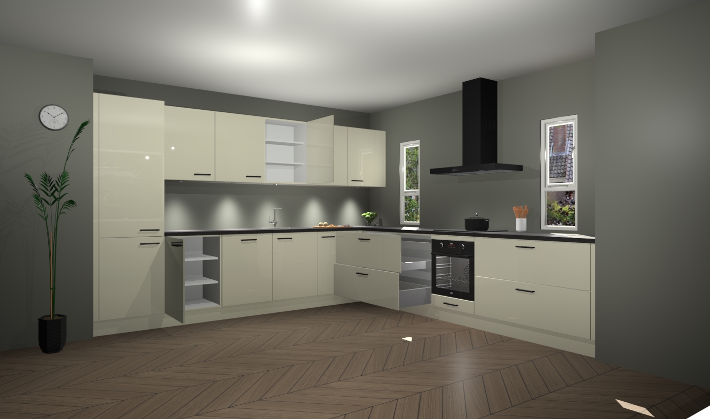 De magnolia hoogglans keuken is een ideale hoekkeuken en heeft alle functies en apparatuur die u maar nodig kunt hebben. Bij de bestelling krijgt u een oven, inductiekookplaat, afzuigkap, vaatwasser en koelkast - deze kunnen desgewenst eenvoudig worden uitgebreid naar AEG na bestellen. Elke kast wordt ook voor gemonteerd geleverd met soft close deuren die jarenlang gebruik beloven. Stelt u zich voor dat u geen gedoe heeft met vervelende montage - vanaf het moment dat u uw bestelling plaats, duurt het slechts 7 weken voor het bij u thuis geleverd wordt.