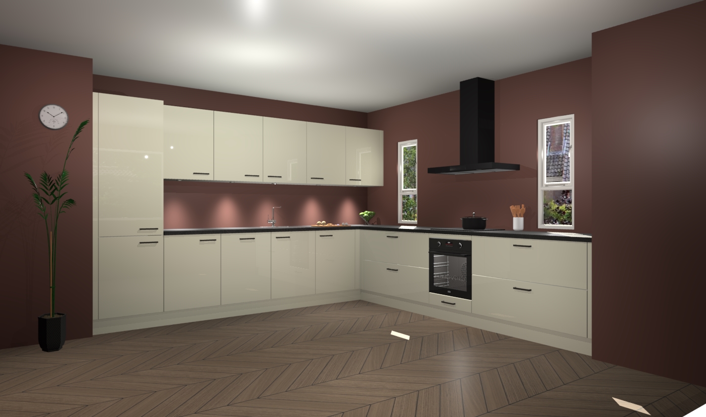De magnolia hoogglans keuken is een ideale hoekkeuken en heeft alle functies en apparatuur die u maar nodig kunt hebben. Bij de bestelling krijgt u een oven, inductiekookplaat, afzuigkap, vaatwasser en koelkast - deze kunnen desgewenst eenvoudig worden uitgebreid naar AEG na bestellen. Elke kast wordt ook voor gemonteerd geleverd met soft close deuren die jarenlang gebruik beloven. Stelt u zich voor dat u geen gedoe heeft met vervelende montage - vanaf het moment dat u uw bestelling plaats, duurt het slechts 7 weken voor het bij u thuis geleverd wordt.