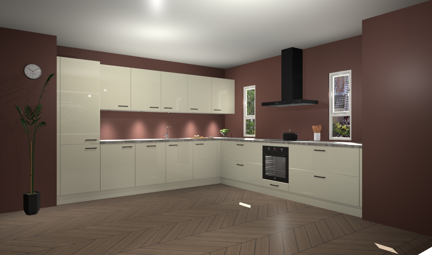 De magnolia hoogglans keuken is een ideale hoekkeuken en heeft alle functies en apparatuur die u maar nodig kunt hebben. Bij de bestelling krijgt u een oven, inductiekookplaat, afzuigkap, vaatwasser en koelkast - deze kunnen desgewenst eenvoudig worden uitgebreid naar AEG na bestellen. Elke kast wordt ook voor gemonteerd geleverd met soft close deuren die jarenlang gebruik beloven. Stelt u zich voor dat u geen gedoe heeft met vervelende montage - vanaf het moment dat u uw bestelling plaats, duurt het slechts 7 weken voor het bij u thuis geleverd wordt.