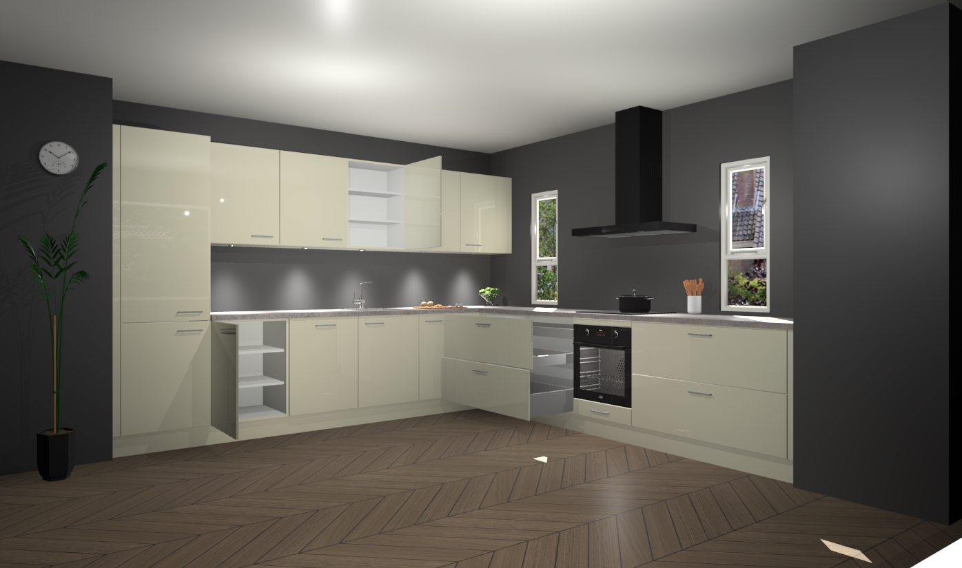 De magnolia hoogglans keuken is een ideale hoekkeuken en heeft alle functies en apparatuur die u maar nodig kunt hebben. Bij de bestelling krijgt u een oven, inductiekookplaat, afzuigkap, vaatwasser en koelkast - deze kunnen desgewenst eenvoudig worden uitgebreid naar AEG na bestellen. Elke kast wordt ook voor gemonteerd geleverd met soft close deuren die jarenlang gebruik beloven. Stelt u zich voor dat u geen gedoe heeft met vervelende montage - vanaf het moment dat u uw bestelling plaats, duurt het slechts 7 weken voor het bij u thuis geleverd wordt.