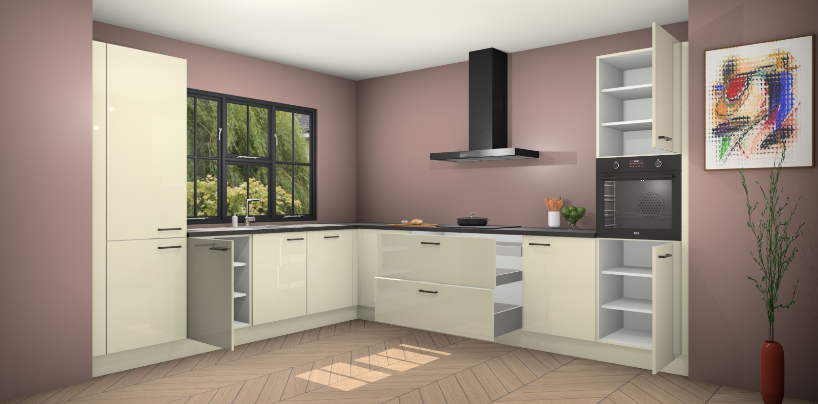 Maak kennis met de magnolia hoogglans keuken Tychy! Geniet van een keuken die er stijlvol uitziet in elk huis, terwijl u het gemak hebt van veel opbergruimte in dit moderne meesterwerk. Het hoogglans ontwerp geeft een glanzende, heldere afwerking die de helderheid verhoogt en een element van luxe toevoegt aan uw keukenomgeving.