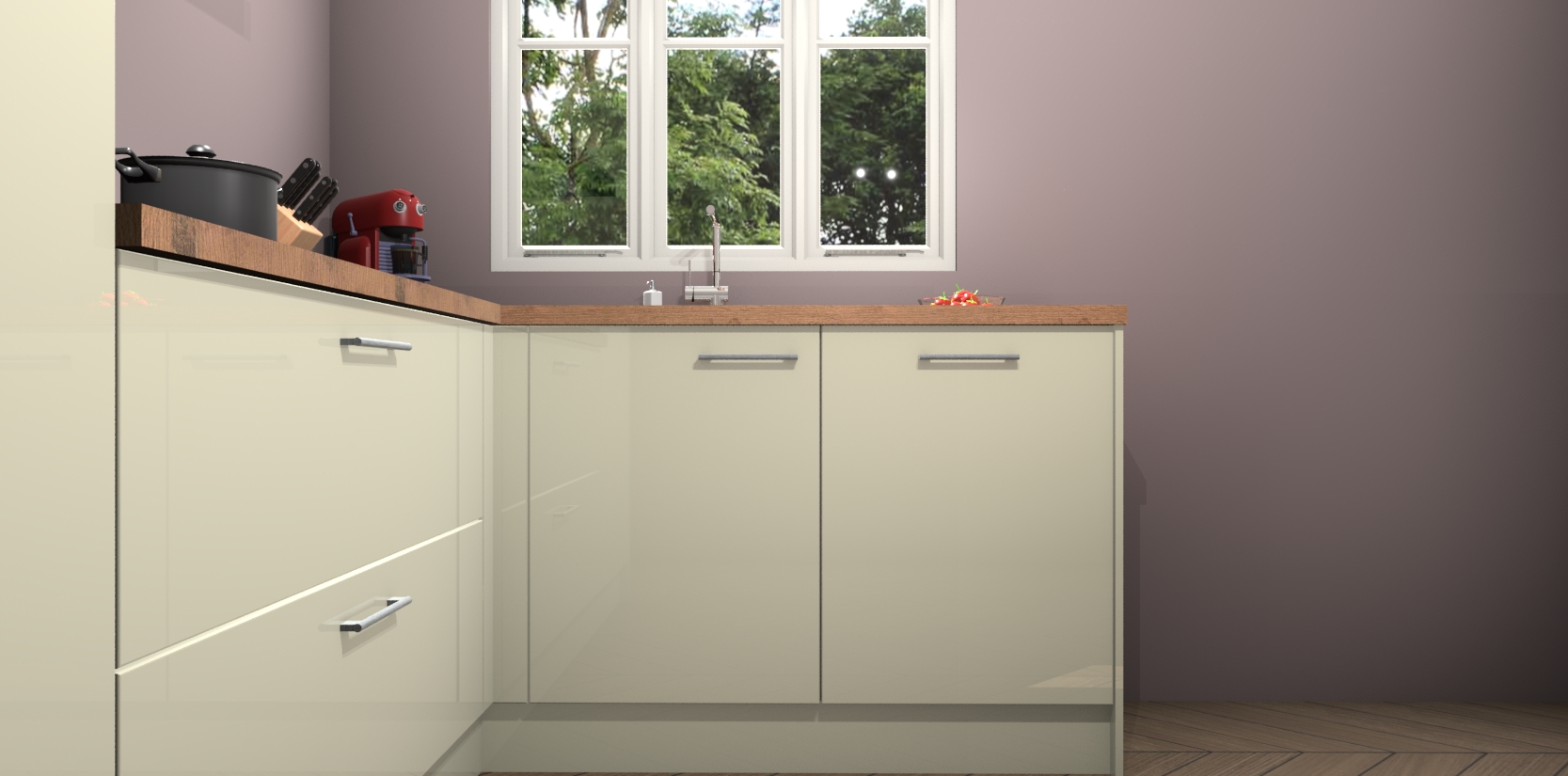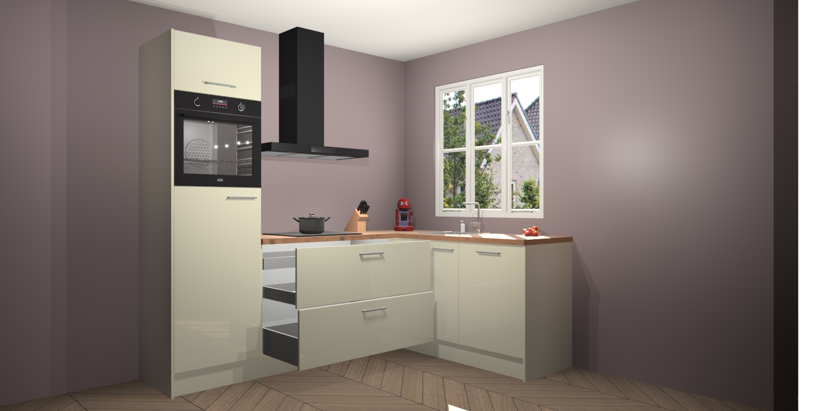 Dit model biedt u voldoende opbergruimte en vijf ingebouwde apparaten: een oven, inductiekookplaat, afzuigkap, vaatwasser en koelkast. Deze apparaten kunnen gemakkelijk worden geüpgrade naar AEG nadat u besteld heeft. De verschillende laden en kastjes bevatten softclose-deuren waardoor ze gezellig dichtvallen met een geruststellend helemaal geruisloos geluid. En dat is nog niet alles! We garanderen ook dat de prijs altijd laag blijft - dus haal nu uw Magnolia hoogglans keuken Victoria terwijl het kan.