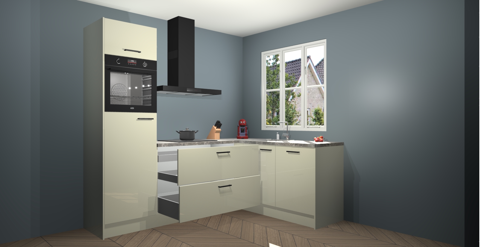 Dit model biedt u voldoende opbergruimte en vijf ingebouwde apparaten: een oven, inductiekookplaat, afzuigkap, vaatwasser en koelkast. Deze apparaten kunnen gemakkelijk worden geüpgrade naar AEG nadat u besteld heeft. De verschillende laden en kastjes bevatten softclose-deuren waardoor ze gezellig dichtvallen met een geruststellend helemaal geruisloos geluid. En dat is nog niet alles! We garanderen ook dat de prijs altijd laag blijft - dus haal nu uw Magnolia hoogglans keuken Victoria terwijl het kan.