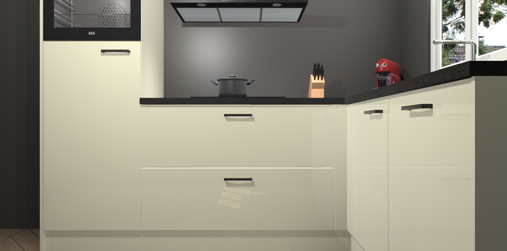 Dit model biedt u voldoende opbergruimte en vijf ingebouwde apparaten: een oven, inductiekookplaat, afzuigkap, vaatwasser en koelkast. Deze apparaten kunnen gemakkelijk worden geüpgrade naar AEG nadat u besteld heeft. De verschillende laden en kastjes bevatten softclose-deuren waardoor ze gezellig dichtvallen met een geruststellend helemaal geruisloos geluid. En dat is nog niet alles! We garanderen ook dat de prijs altijd laag blijft - dus haal nu uw Magnolia hoogglans keuken Victoria terwijl het kan.