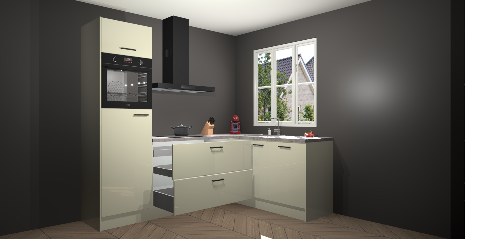 Dit model biedt u voldoende opbergruimte en vijf ingebouwde apparaten: een oven, inductiekookplaat, afzuigkap, vaatwasser en koelkast. Deze apparaten kunnen gemakkelijk worden geüpgrade naar AEG nadat u besteld heeft. De verschillende laden en kastjes bevatten softclose-deuren waardoor ze gezellig dichtvallen met een geruststellend helemaal geruisloos geluid. En dat is nog niet alles! We garanderen ook dat de prijs altijd laag blijft - dus haal nu uw Magnolia hoogglans keuken Victoria terwijl het kan.