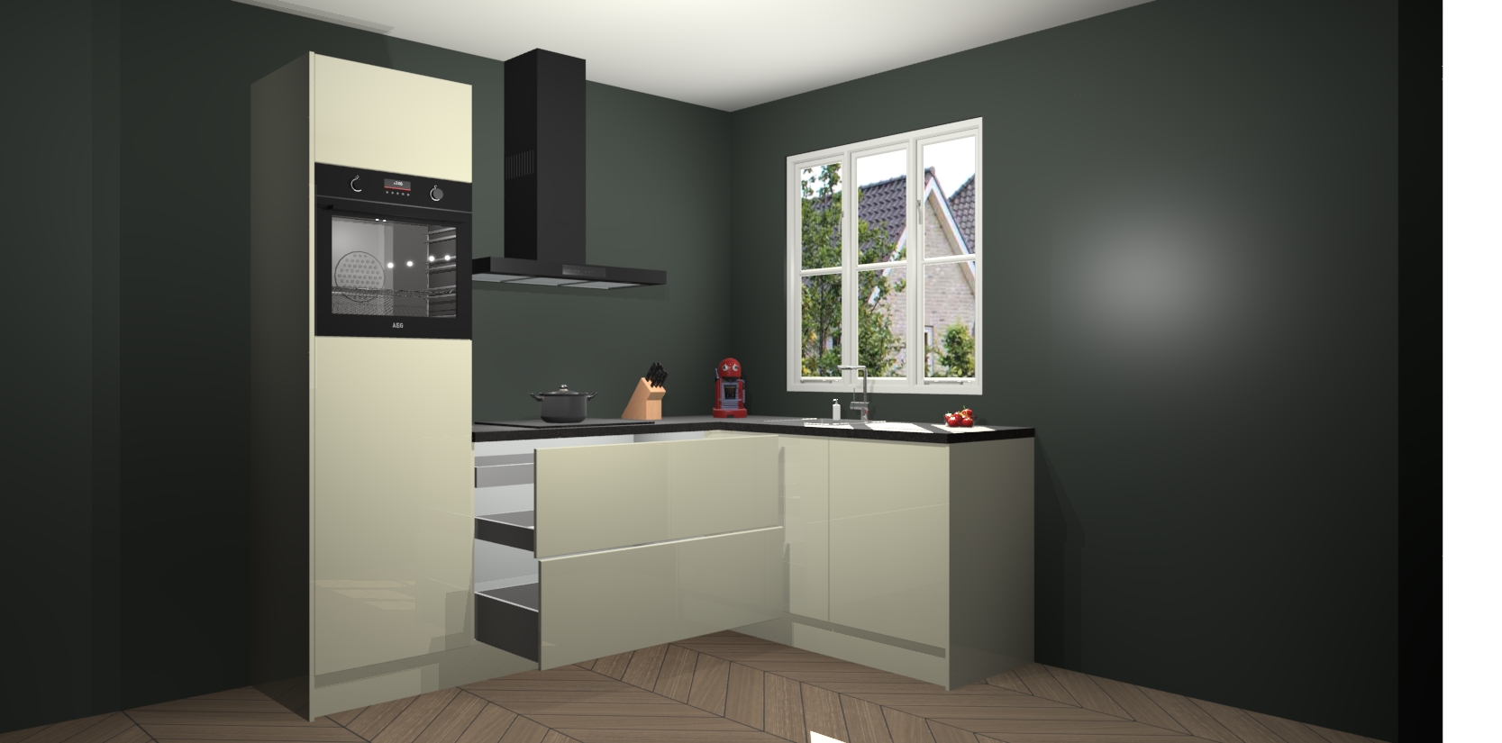 Dit model biedt u voldoende opbergruimte en vijf ingebouwde apparaten: een oven, inductiekookplaat, afzuigkap, vaatwasser en koelkast. Deze apparaten kunnen gemakkelijk worden geüpgrade naar AEG nadat u besteld heeft. De verschillende laden en kastjes bevatten softclose-deuren waardoor ze gezellig dichtvallen met een geruststellend helemaal geruisloos geluid. En dat is nog niet alles! We garanderen ook dat de prijs altijd laag blijft - dus haal nu uw Magnolia hoogglans keuken Victoria terwijl het kan.