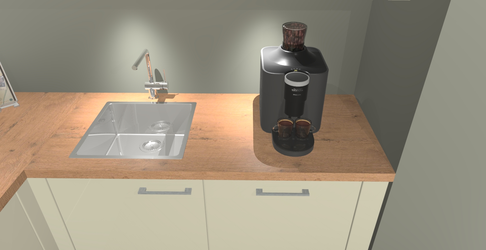 - De spoelbak is nog niet in gevreesd. Dit dient tijdens het werk gedaan te worden