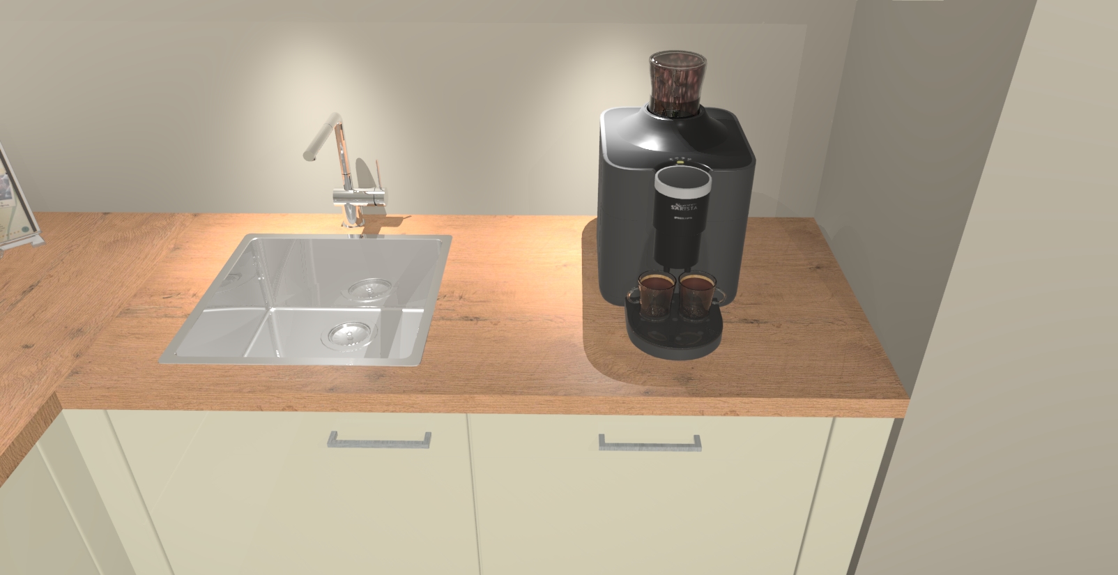 • De spoelbak is nog niet in gevreesd. Dit dient tijdens het werk gedaan te worden