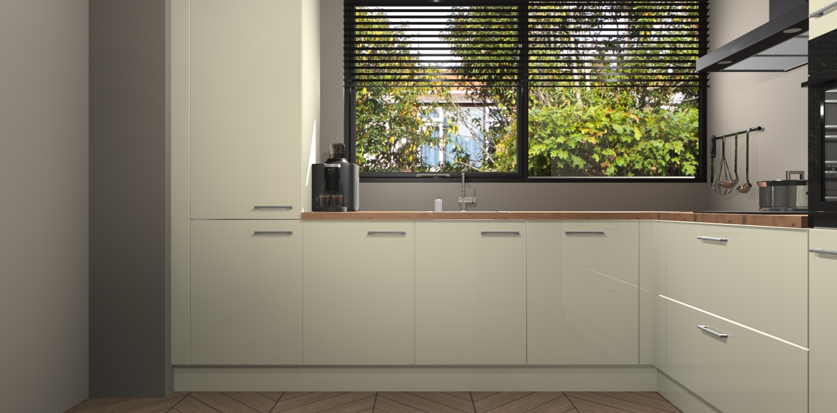 Wij presenteren de revolutie in keukens: de hoogglans magnolia keuken Vogar. Met modern design, een tijdloos uiterlijk en kasten die al voor gemonteerd worden geleverd, laat deze stijlvolle keuken uw kookervaring op een hele nieuwe manier transformeren.