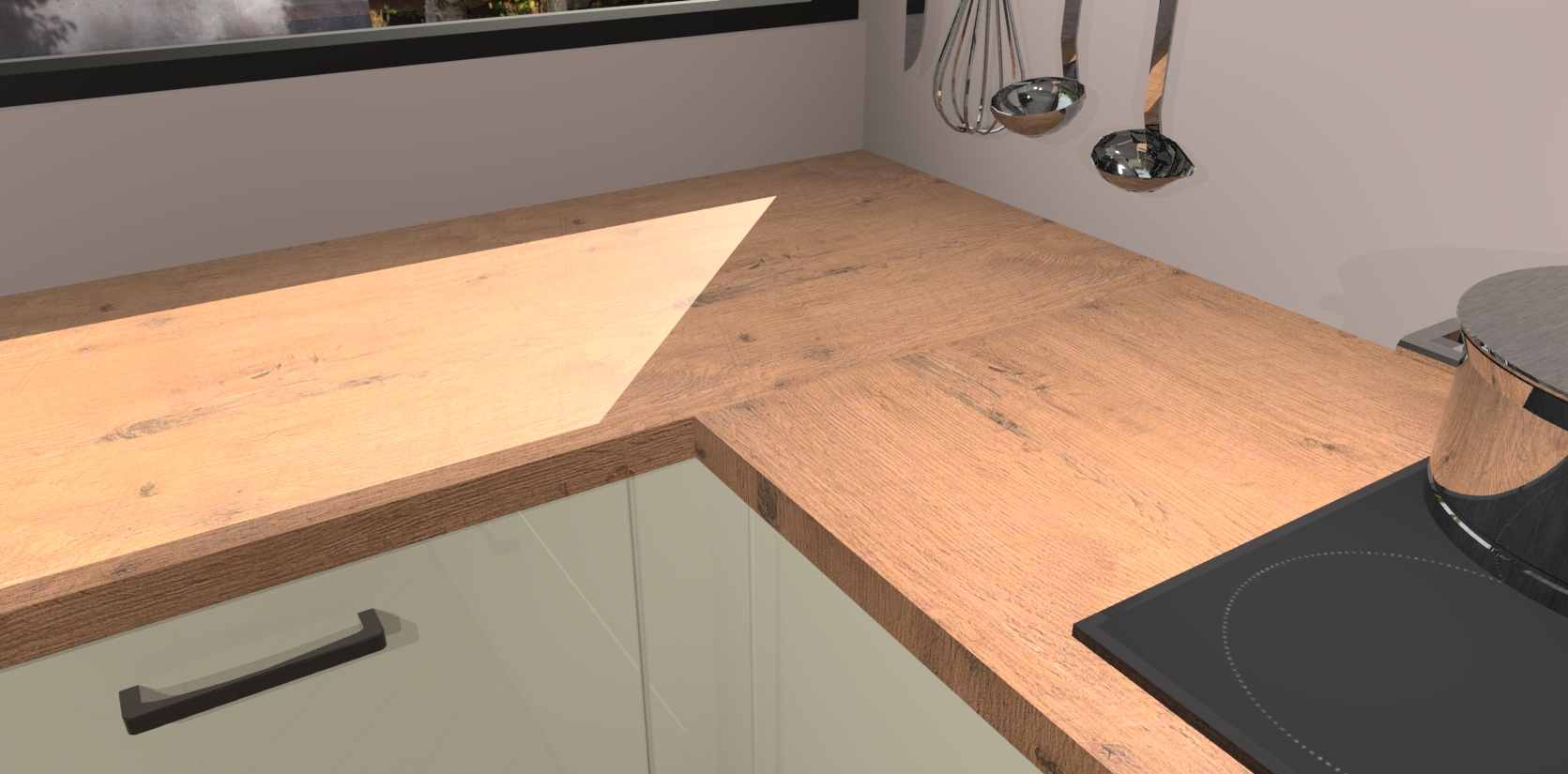 - Bij een hoekwerkblad zijn de hoeken in gevreesd en op maat gemaakt