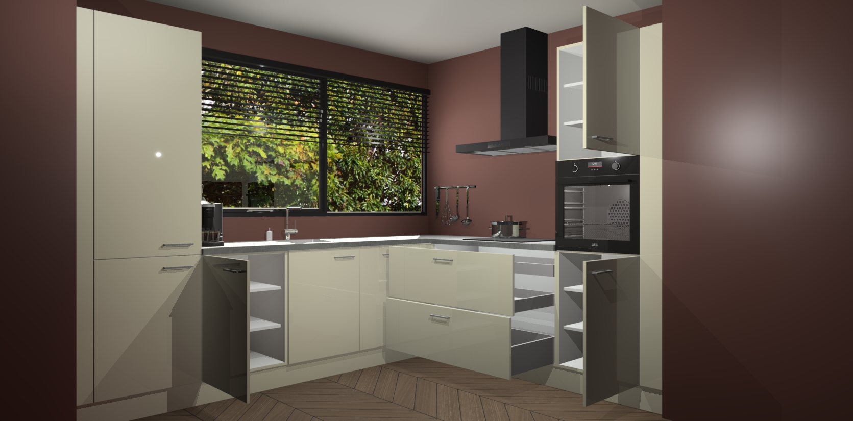 Met een modern, tijdloos design en ruime opslagruimte, zult u zich in no-time thuis voelen in uw nieuwe keuken. Uw leven wordt eenvoudiger met de soft-close deuren die voor het ultieme stille comfort zorgen - geen geluid dat u stoort terwijl u kookt. Ook is de keuken voorzien van 5 ingebouwde apparaten: een oven, inductie kookplaat, afzuigkap, vaatwasser en koelkast. Deze kunnen gemakkelijk na bestelling worden bijgewerkt naar AEG - waardoor uw luxe ervaring compleet is.