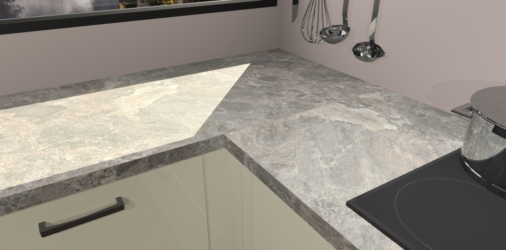 - Bij een hoekwerkblad zijn de hoeken in gevreesd en op maat gemaakt