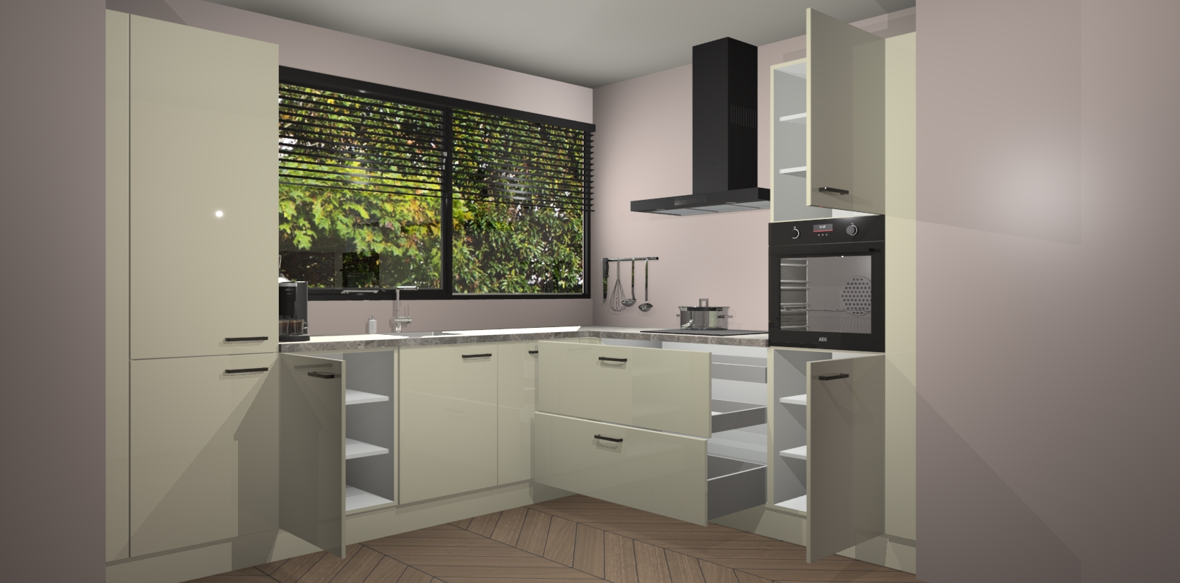 Met een modern, tijdloos design en ruime opslagruimte, zult u zich in no-time thuis voelen in uw nieuwe keuken. Uw leven wordt eenvoudiger met de soft-close deuren die voor het ultieme stille comfort zorgen - geen geluid dat u stoort terwijl u kookt. Ook is de keuken voorzien van 5 ingebouwde apparaten: een oven, inductie kookplaat, afzuigkap, vaatwasser en koelkast. Deze kunnen gemakkelijk na bestelling worden bijgewerkt naar AEG - waardoor uw luxe ervaring compleet is.