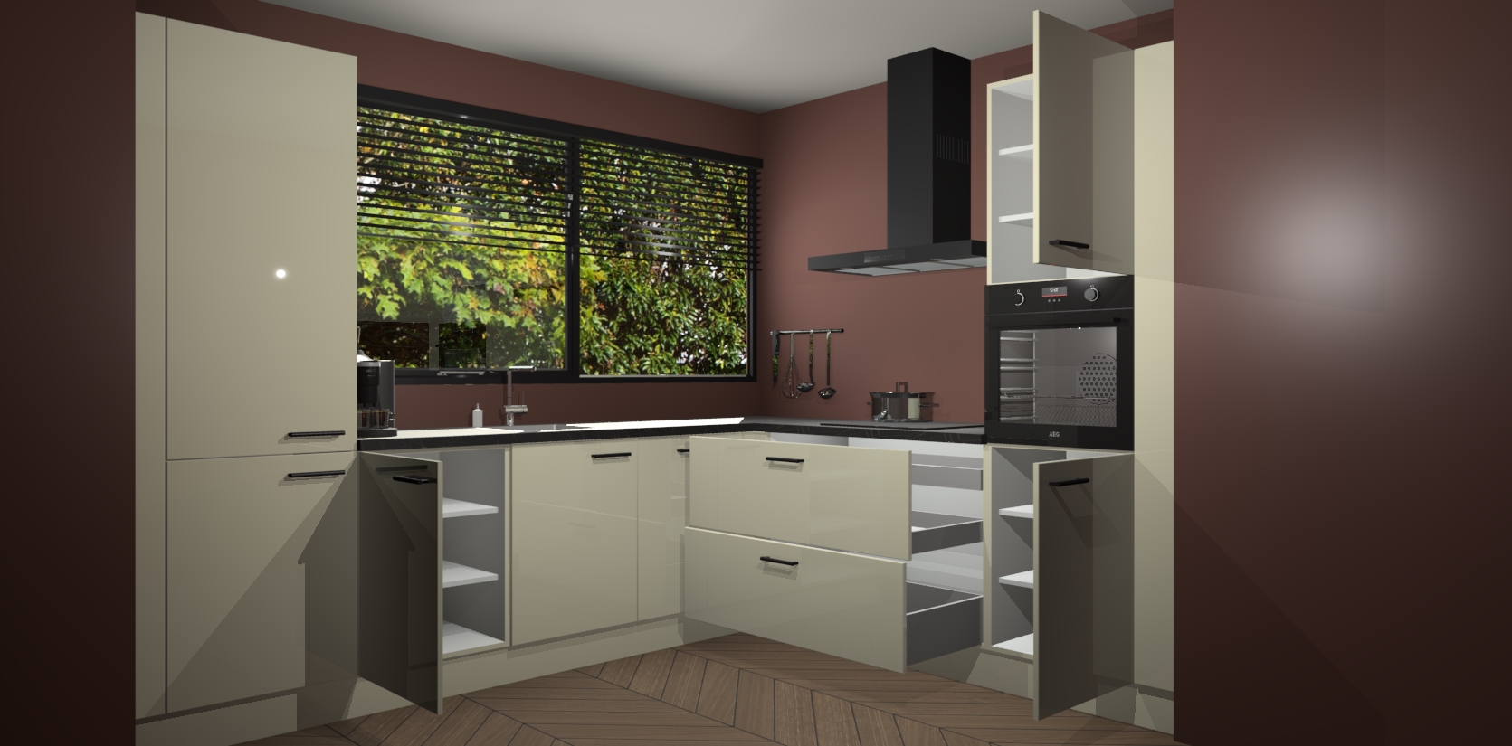 Met een modern, tijdloos design en ruime opslagruimte, zult u zich in no-time thuis voelen in uw nieuwe keuken. Uw leven wordt eenvoudiger met de soft-close deuren die voor het ultieme stille comfort zorgen - geen geluid dat u stoort terwijl u kookt. Ook is de keuken voorzien van 5 ingebouwde apparaten: een oven, inductie kookplaat, afzuigkap, vaatwasser en koelkast. Deze kunnen gemakkelijk na bestelling worden bijgewerkt naar AEG - waardoor uw luxe ervaring compleet is.