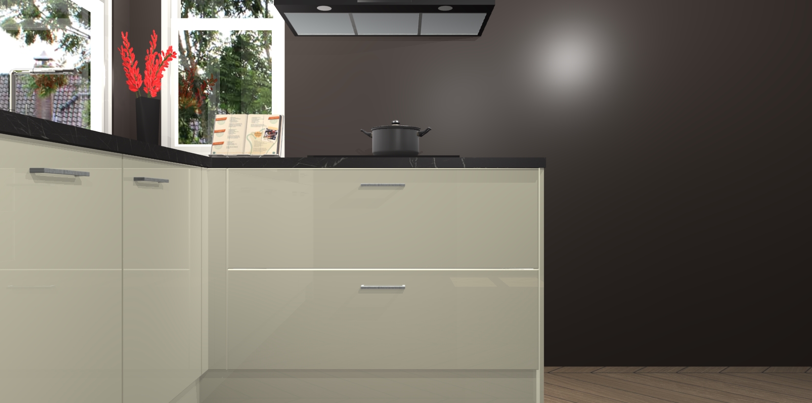 In deze box zijn alle kleuren verzameld van de deuren en werkbladen. Vraag de gratis kleurenbox aan en kijk thuis rustig verder!