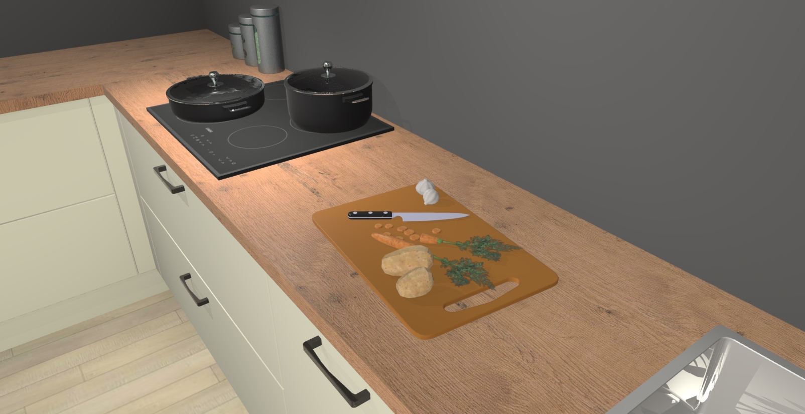 Inclusief plinten, stelpoten en werkblad