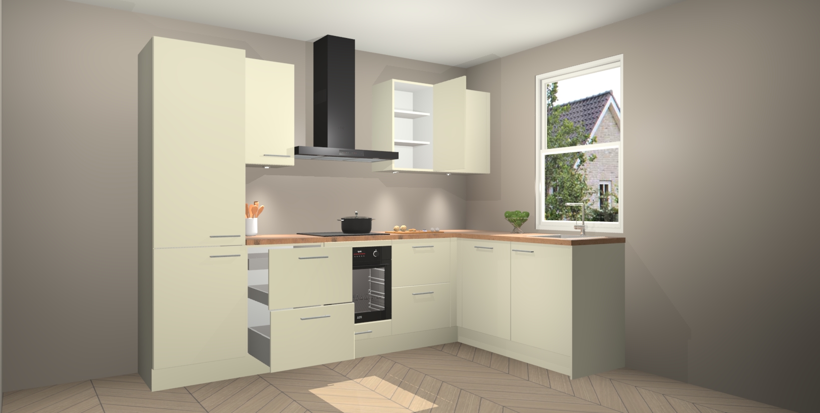 In deze box zijn alle kleuren verzameld van de deuren en werkbladen. Vraag de gratis kleurenbox aan en kijk thuis rustig verder!