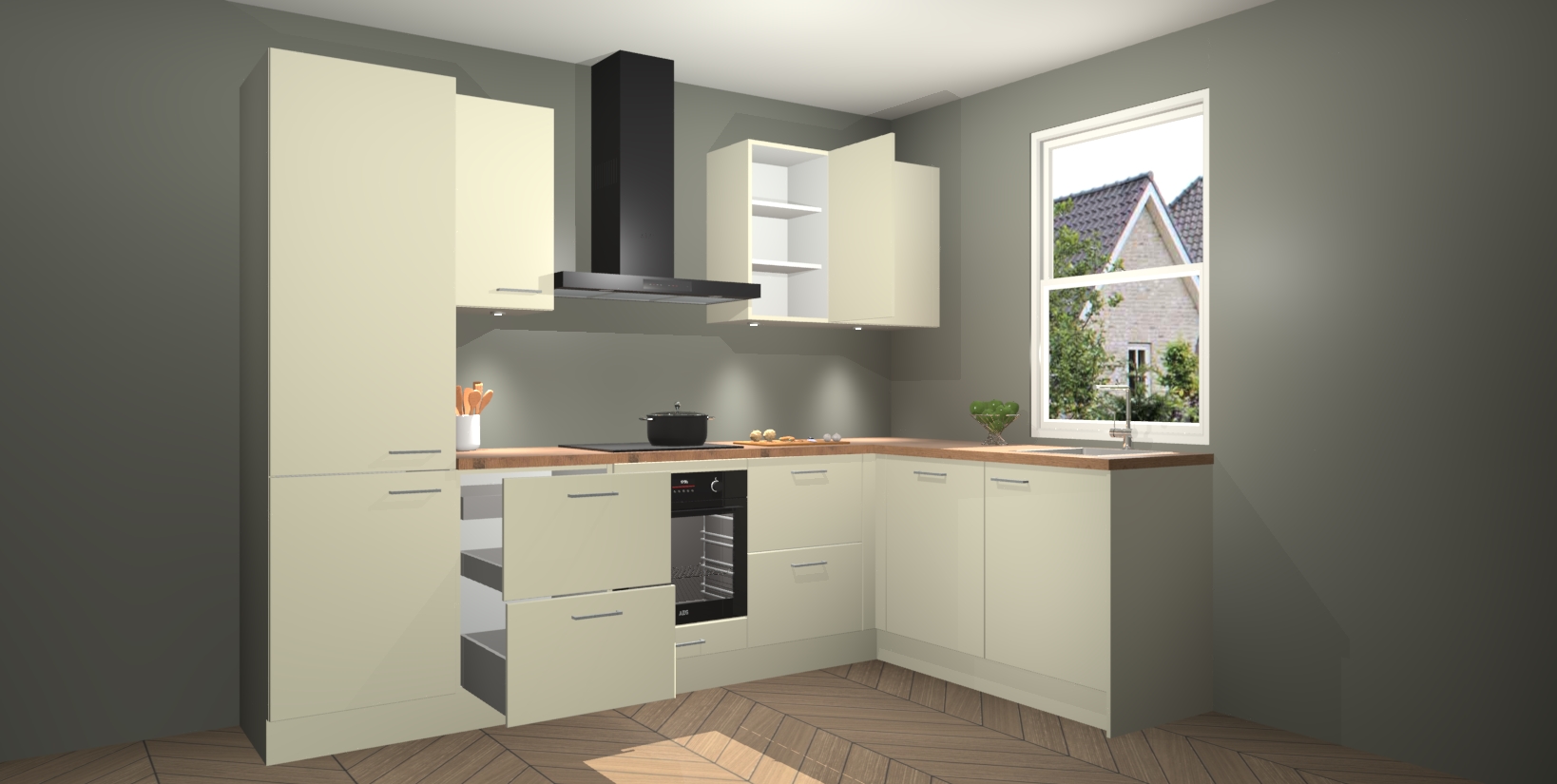Inclusief plinten, stelpoten en werkblad