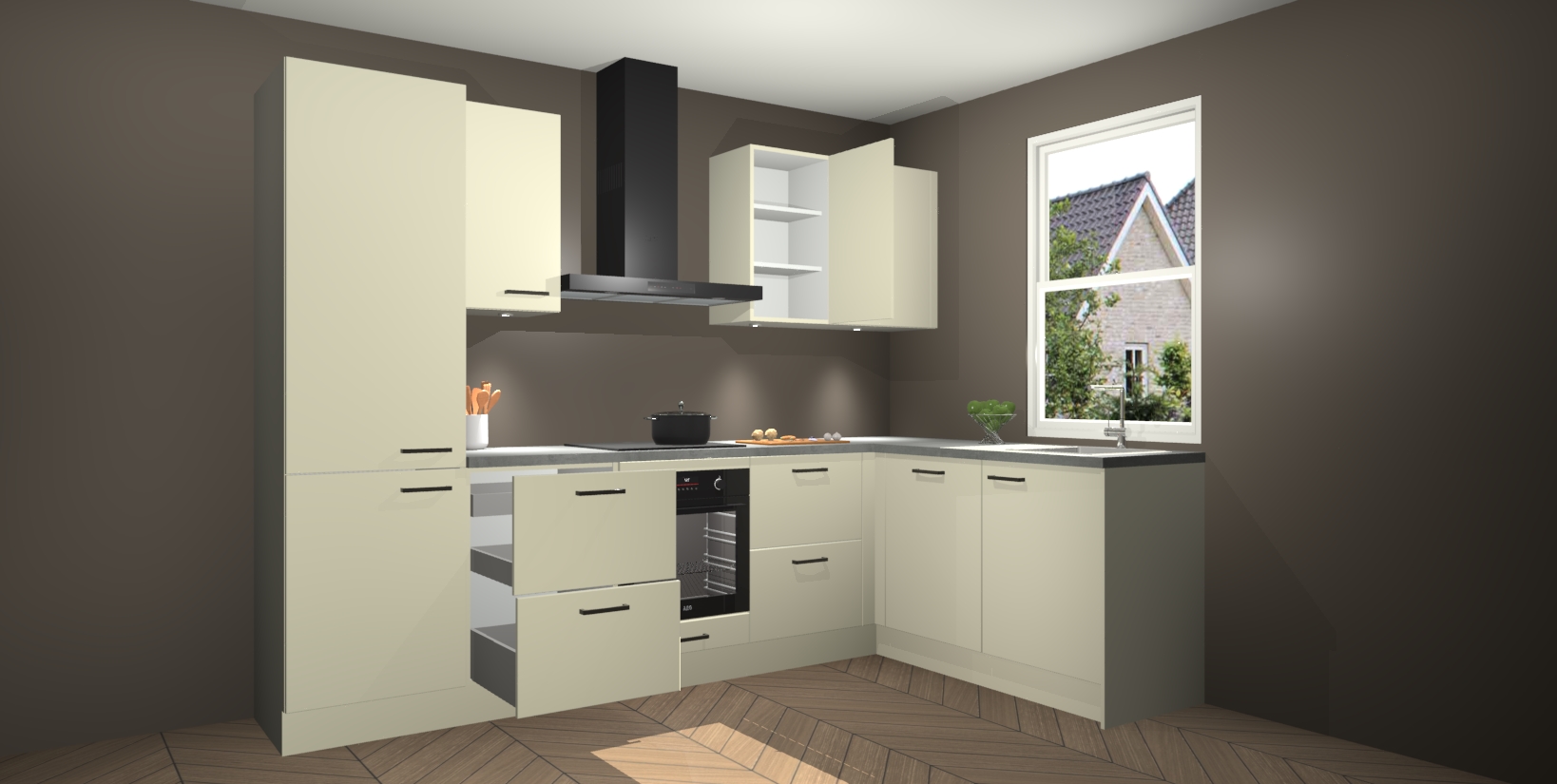 Inclusief plinten, stelpoten en werkblad
