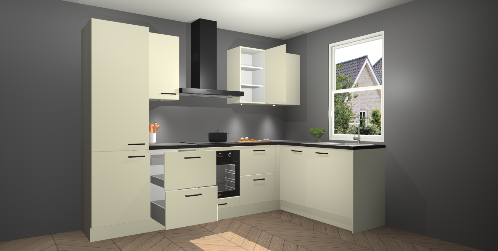 In deze box zijn alle kleuren verzameld van de deuren en werkbladen. Vraag de gratis kleurenbox aan en kijk thuis rustig verder!