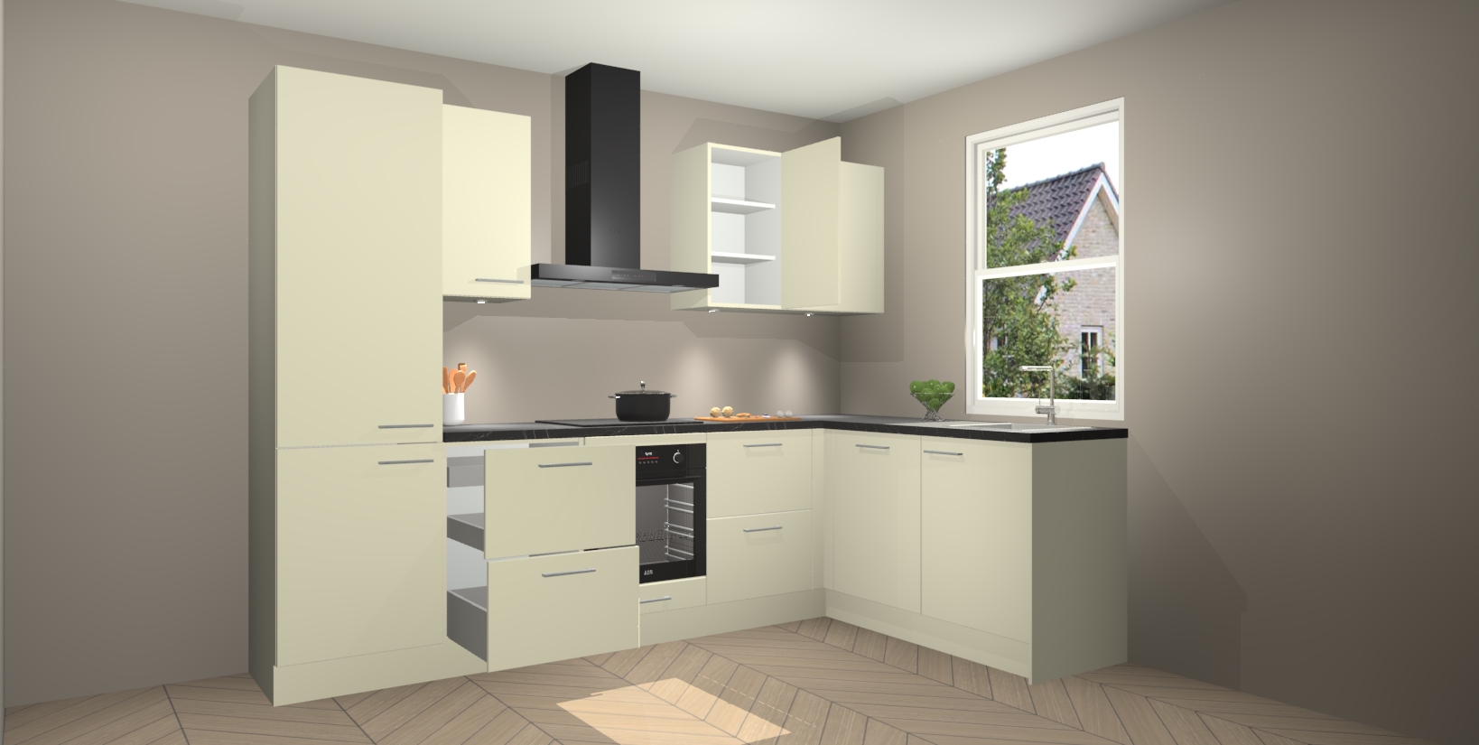 Inclusief plinten, stelpoten en werkblad