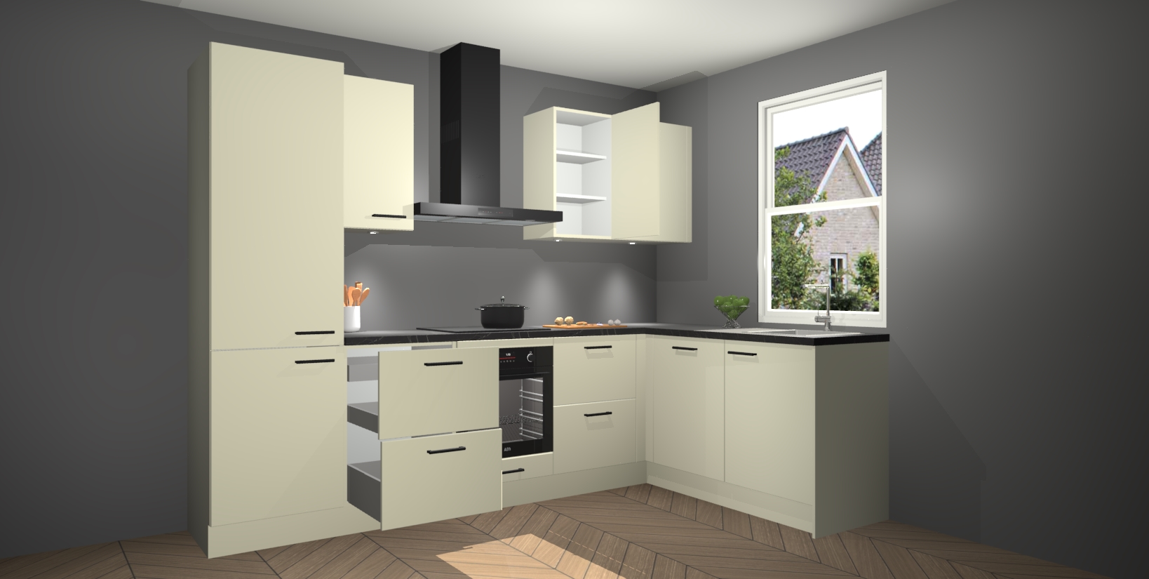 In deze box zijn alle kleuren verzameld van de deuren en werkbladen. Vraag de gratis kleurenbox aan en kijk thuis rustig verder!