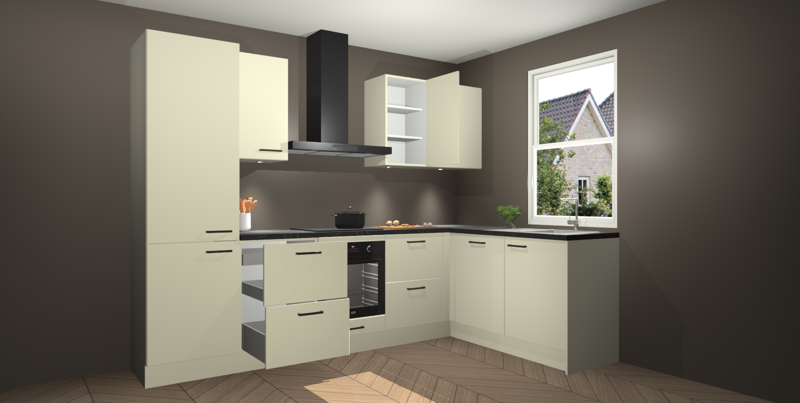 In deze box zijn alle kleuren verzameld van de deuren en werkbladen. Vraag de gratis kleurenbox aan en kijk thuis rustig verder!