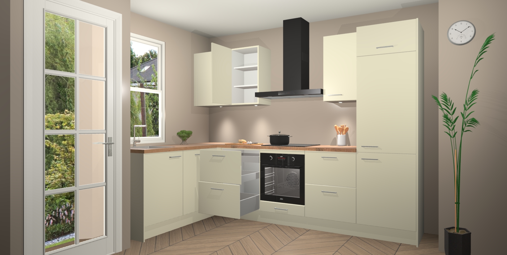 Inclusief plinten, stelpoten en werkblad