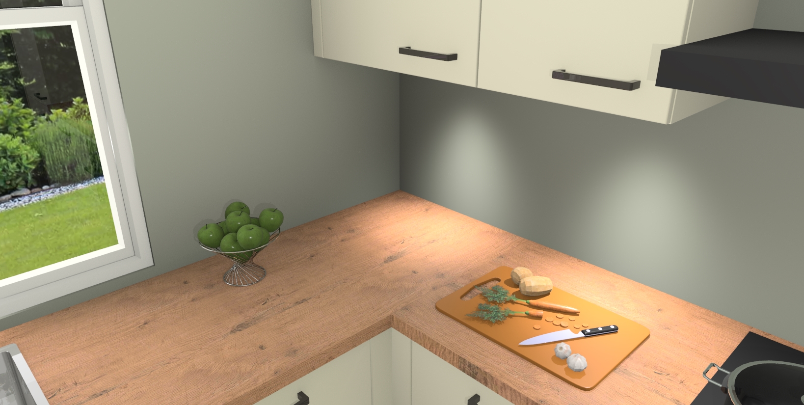 - Bij een hoekwerkblad zijn de hoeken in gevreesd en op maat gemaakt