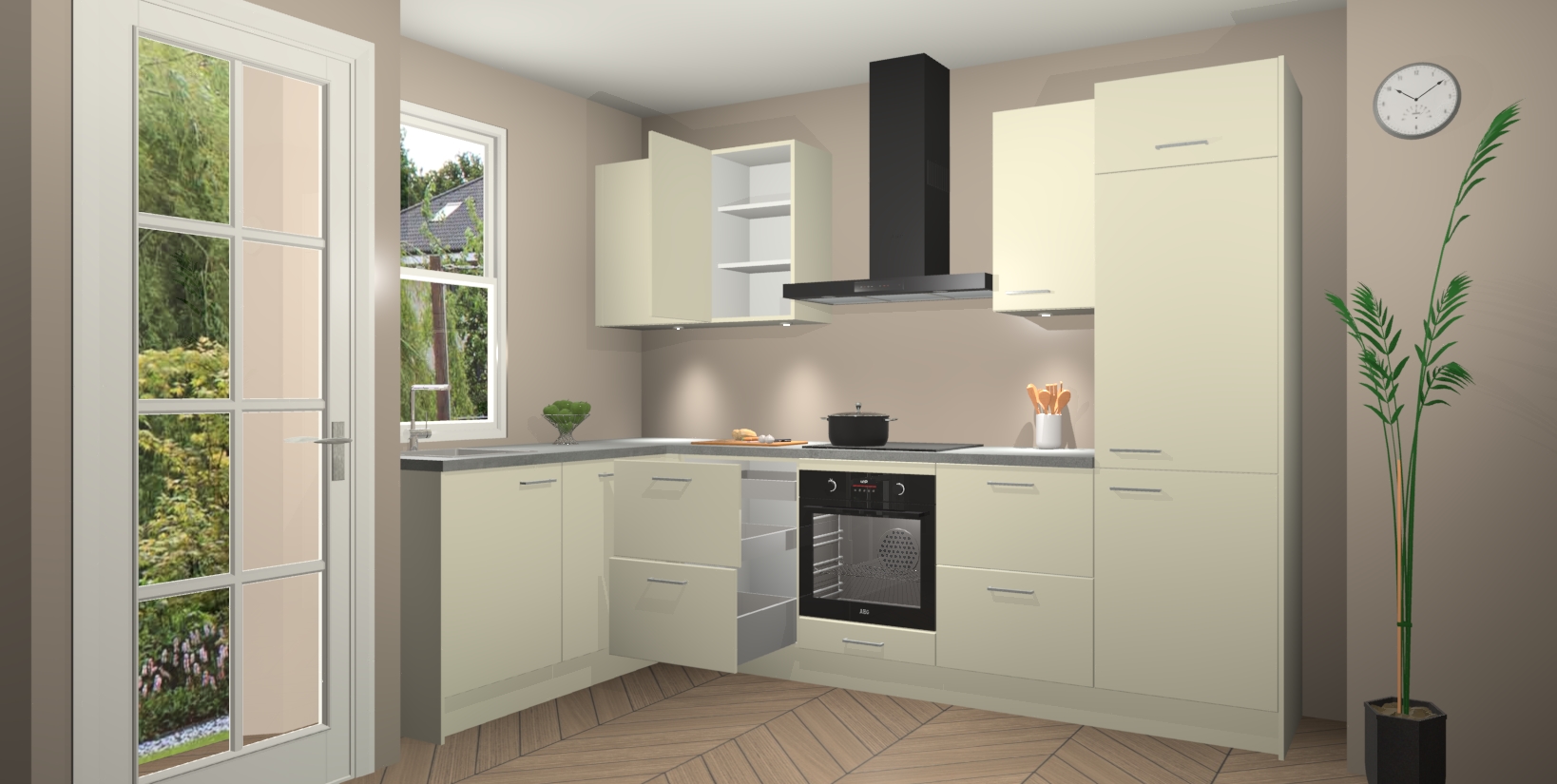 Inclusief plinten, stelpoten en werkblad
