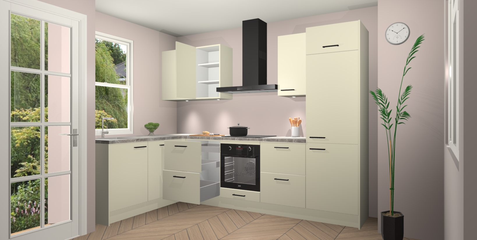 Bent u op zoek naar een strakke, moderne hoekkeuken die uw huis oppept en een moderne uitstraling geeft? Kijk dan niet verder dan de magnolia keuken Beijing. Deze verbluffende hoekkeuken tilt hedendaags design naar een hoger niveau. Qua stijl is deze chique hoekkeuken voorzien van magnolia accenten, om een strakke maar opvallende look te creëren. De binnenkant van de kasten is afgewerkt in dezelfde prachtige magnolia kleur voor extra esthetische aantrekkingskracht.