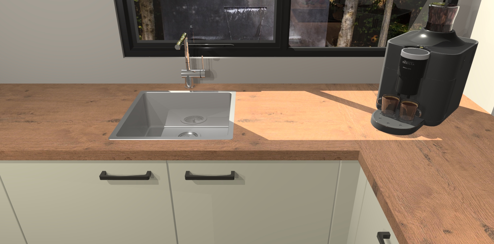 - De spoelbak is nog niet in gevreesd. Dit dient tijdens het werk gedaan te worden