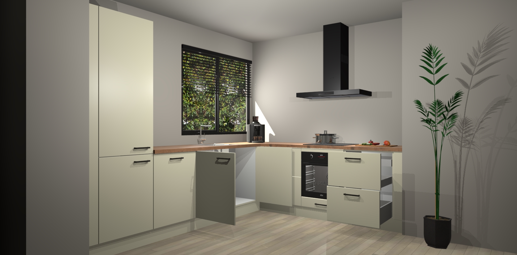 Inclusief plinten, stelpoten en werkblad