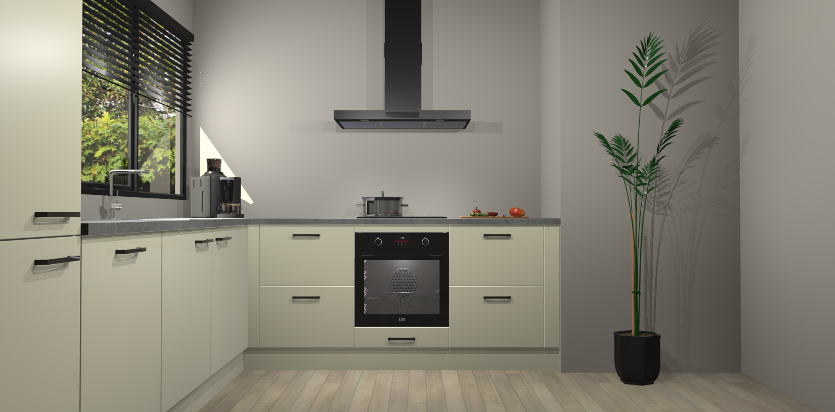 Met een modern, tijdloos design en ruime opslagruimte, zult u zich in no-time thuis voelen in uw nieuwe keuken. Uw leven wordt eenvoudiger met de soft-close deuren die voor het ultieme stille comfort zorgen - geen geluid dat u stoort terwijl u kookt. Ook is de keuken voorzien van 5 ingebouwde apparaten: een oven, inductie kookplaat, afzuigkap, vaatwasser en koelkast. Deze kunnen gemakkelijk na bestelling worden bijgewerkt naar AEG - waardoor uw luxe ervaring compleet is.