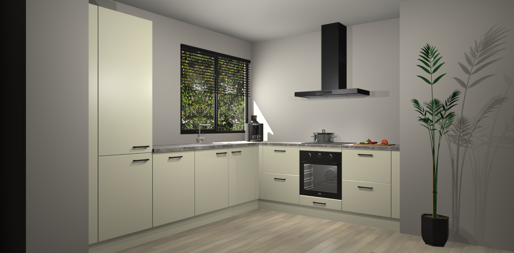 Met een modern, tijdloos design en ruime opslagruimte, zult u zich in no-time thuis voelen in uw nieuwe keuken. Uw leven wordt eenvoudiger met de soft-close deuren die voor het ultieme stille comfort zorgen - geen geluid dat u stoort terwijl u kookt. Ook is de keuken voorzien van 5 ingebouwde apparaten: een oven, inductie kookplaat, afzuigkap, vaatwasser en koelkast. Deze kunnen gemakkelijk na bestelling worden bijgewerkt naar AEG - waardoor uw luxe ervaring compleet is.