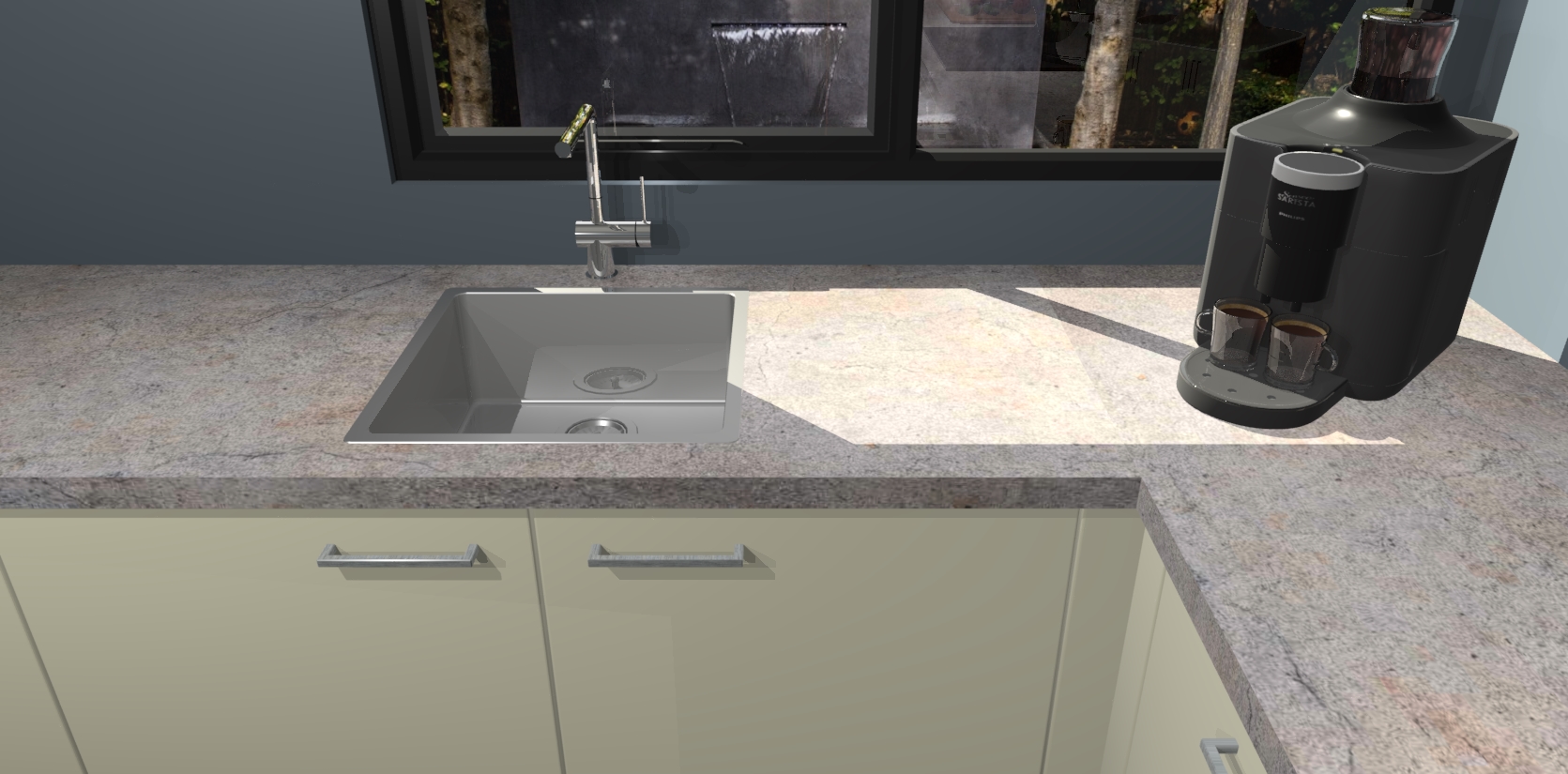 - De spoelbak is nog niet in gevreesd. Dit dient tijdens het werk gedaan te worden