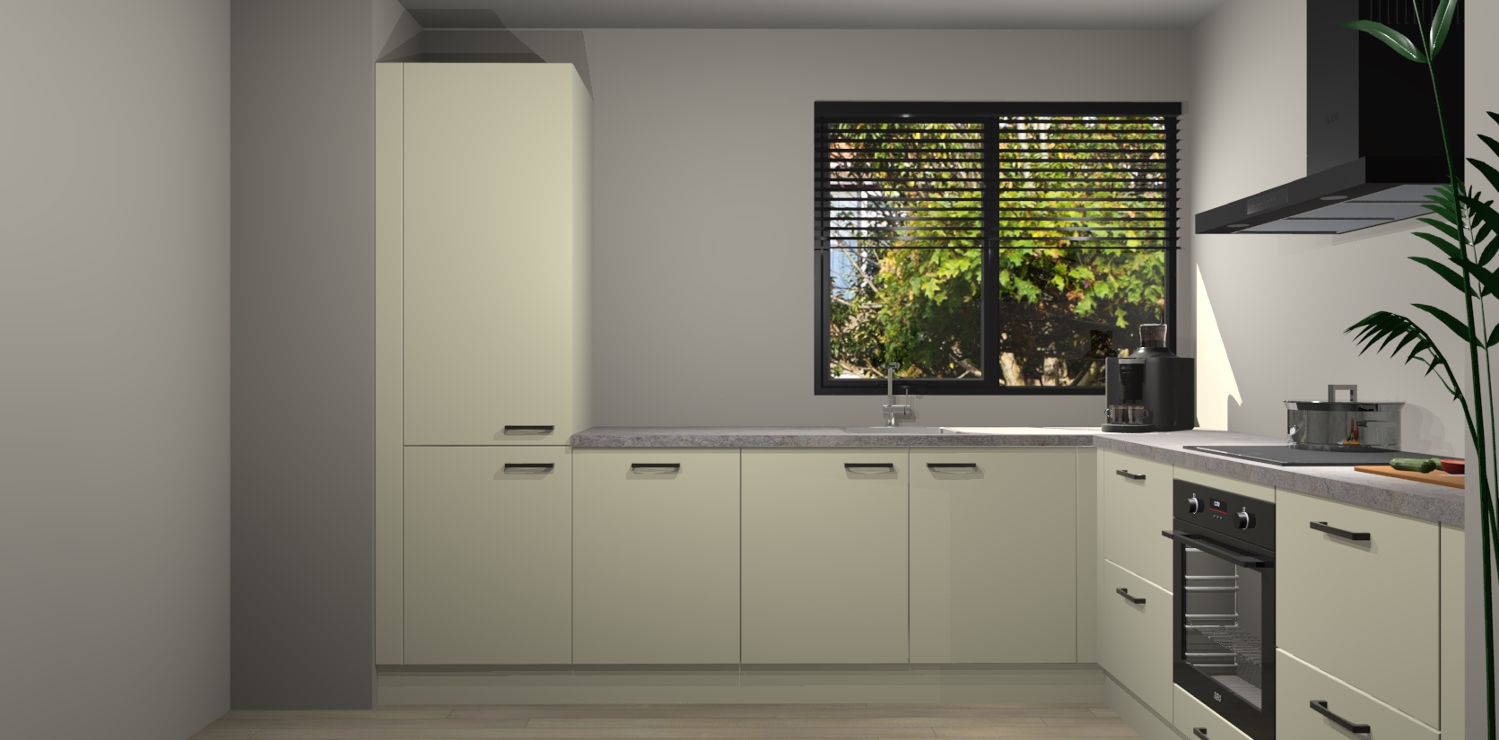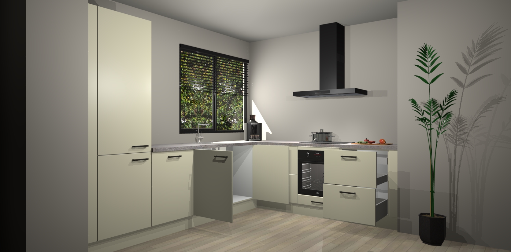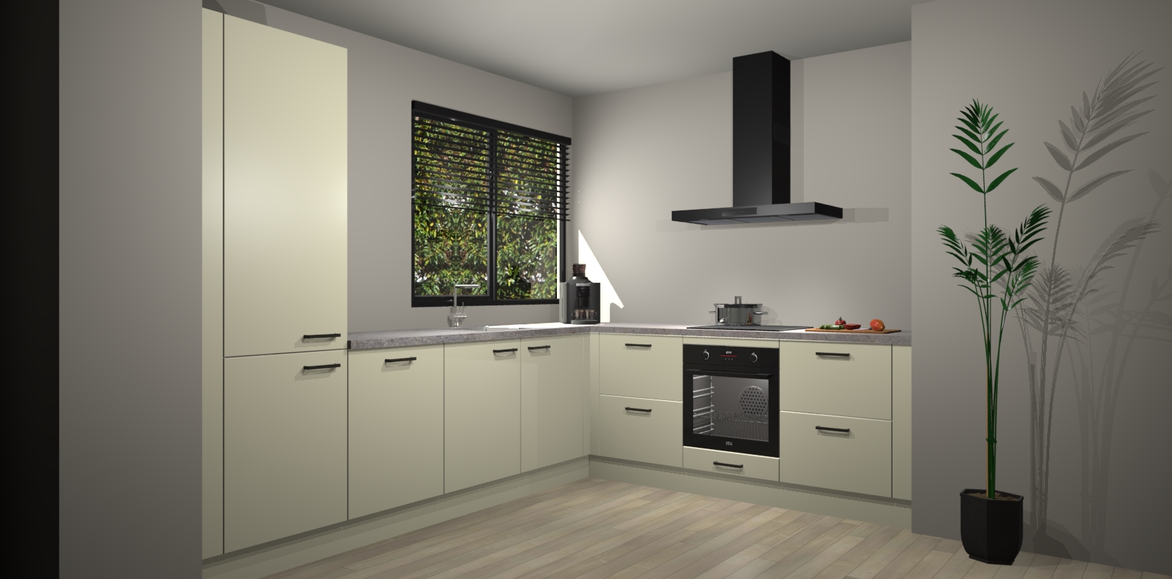 Met een modern, tijdloos design en ruime opslagruimte, zult u zich in no-time thuis voelen in uw nieuwe keuken. Uw leven wordt eenvoudiger met de soft-close deuren die voor het ultieme stille comfort zorgen - geen geluid dat u stoort terwijl u kookt. Ook is de keuken voorzien van 5 ingebouwde apparaten: een oven, inductie kookplaat, afzuigkap, vaatwasser en koelkast. Deze kunnen gemakkelijk na bestelling worden bijgewerkt naar AEG - waardoor uw luxe ervaring compleet is.