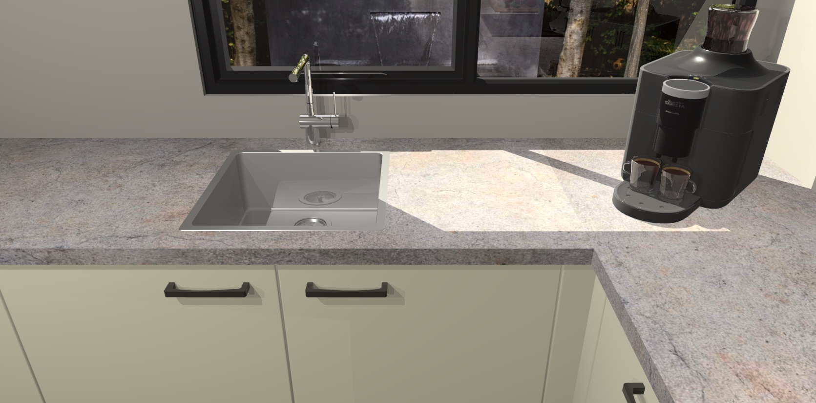 - De spoelbak is nog niet in gevreesd. Dit dient tijdens het werk gedaan te worden