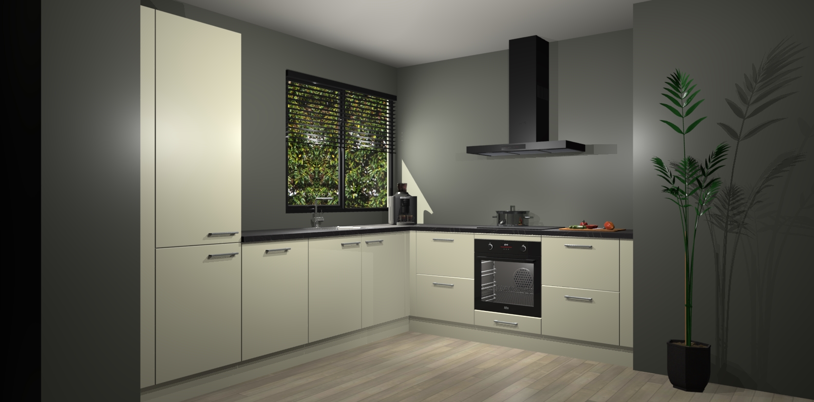 Met een modern, tijdloos design en ruime opslagruimte, zult u zich in no-time thuis voelen in uw nieuwe keuken. Uw leven wordt eenvoudiger met de soft-close deuren die voor het ultieme stille comfort zorgen - geen geluid dat u stoort terwijl u kookt. Ook is de keuken voorzien van 5 ingebouwde apparaten: een oven, inductie kookplaat, afzuigkap, vaatwasser en koelkast. Deze kunnen gemakkelijk na bestelling worden bijgewerkt naar AEG - waardoor uw luxe ervaring compleet is.