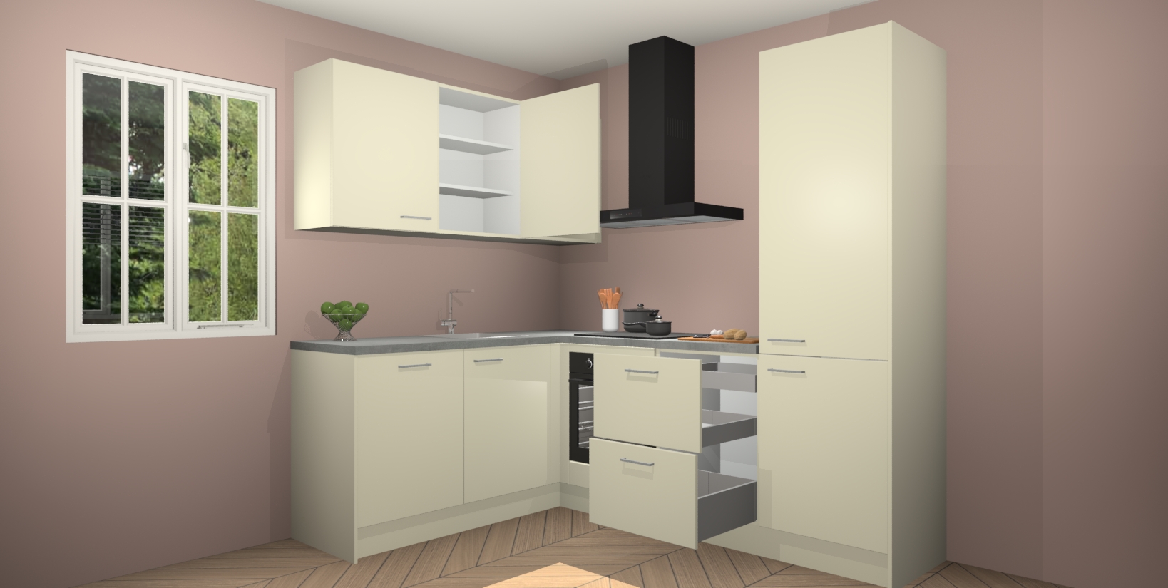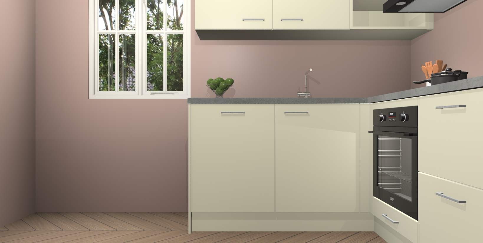 Inclusief plinten, stelpoten en werkblad